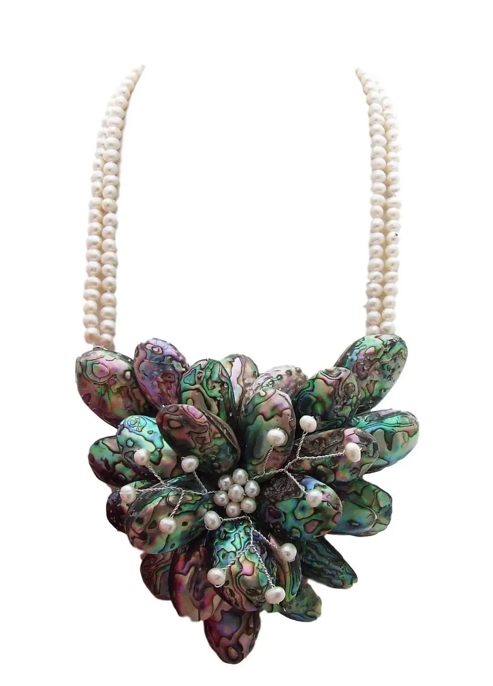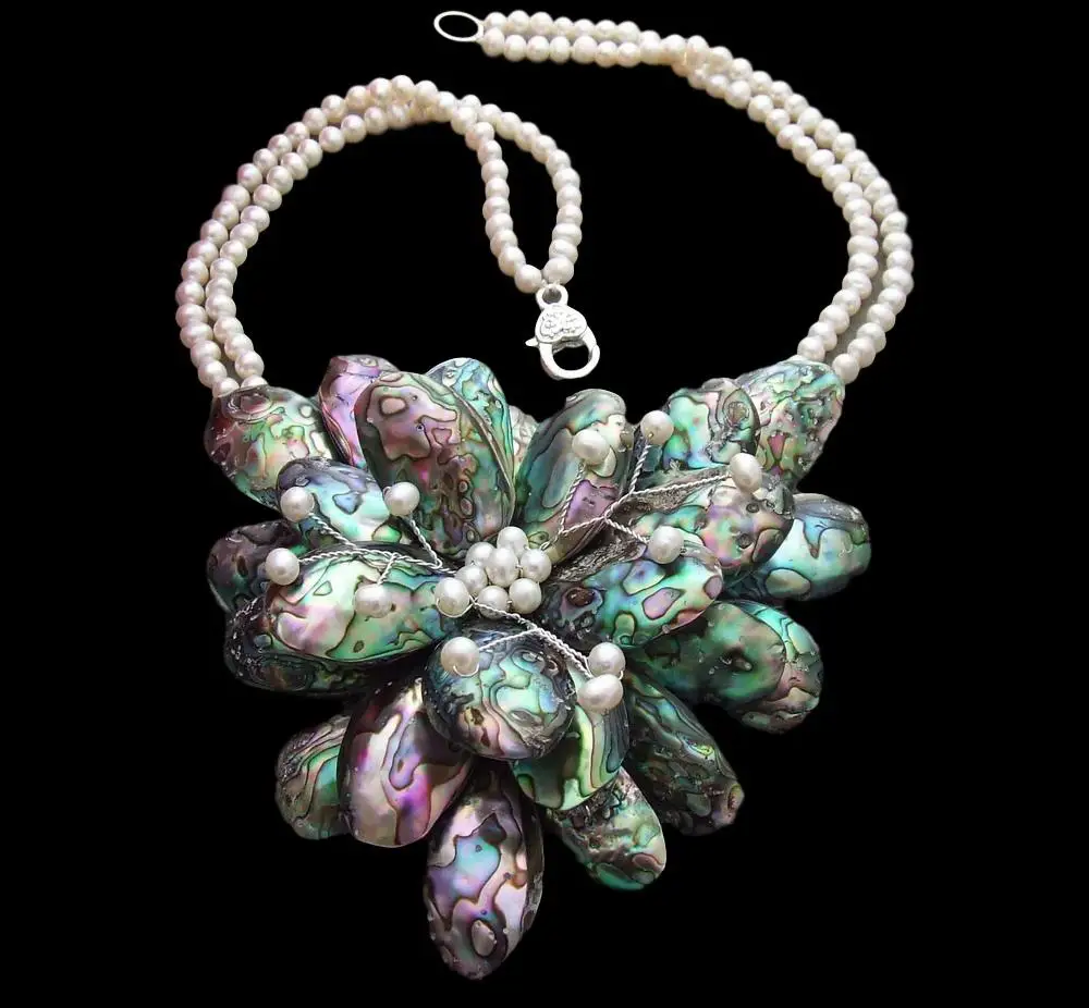 Gems Info:Fresh water cultured pearl, round white pearl, fancy green abalone shell, good quality, high luster!