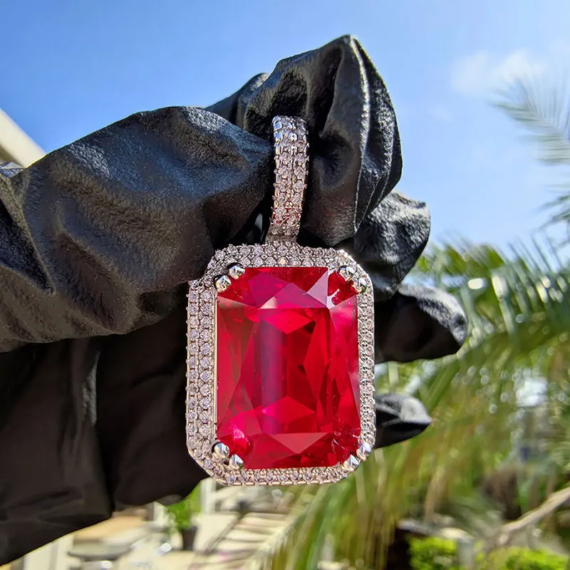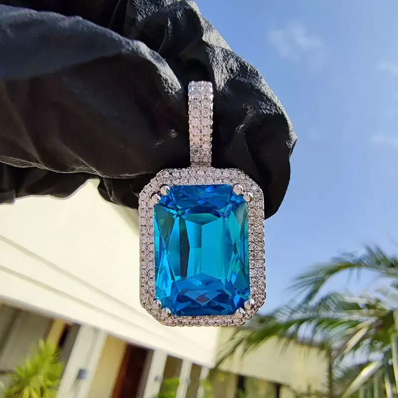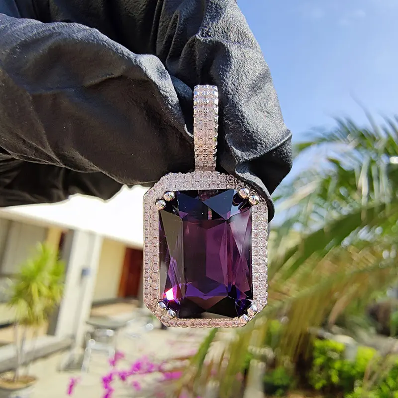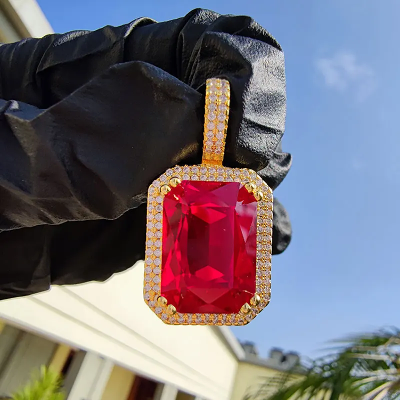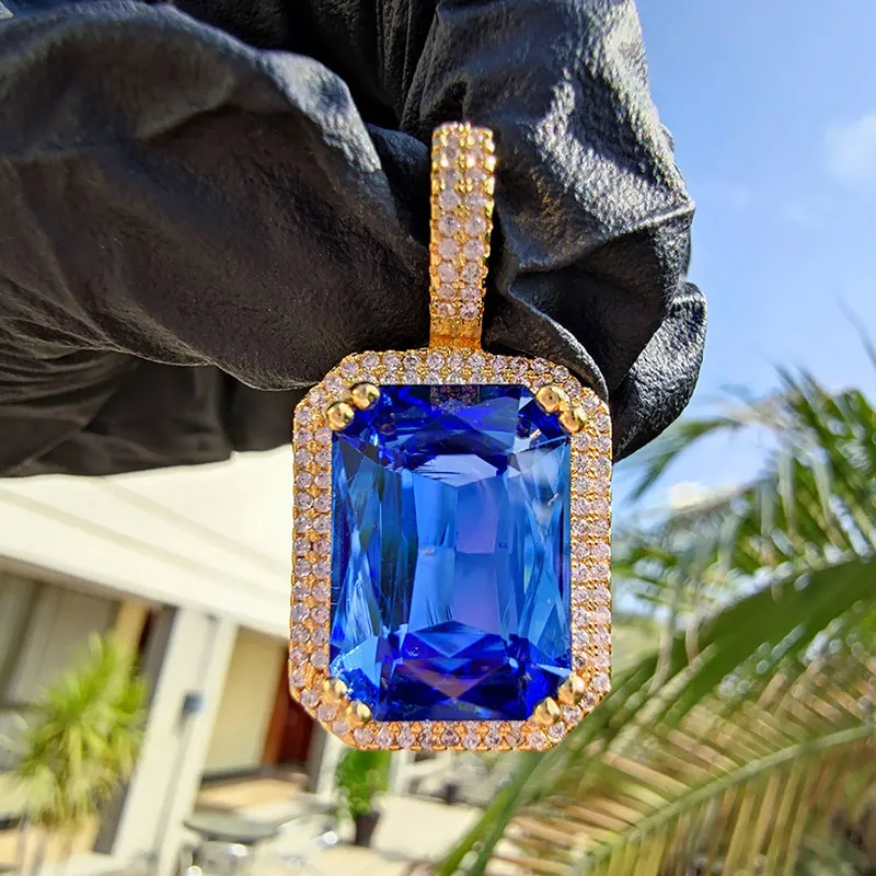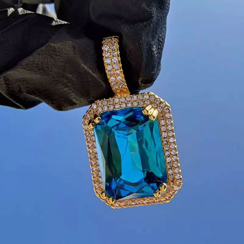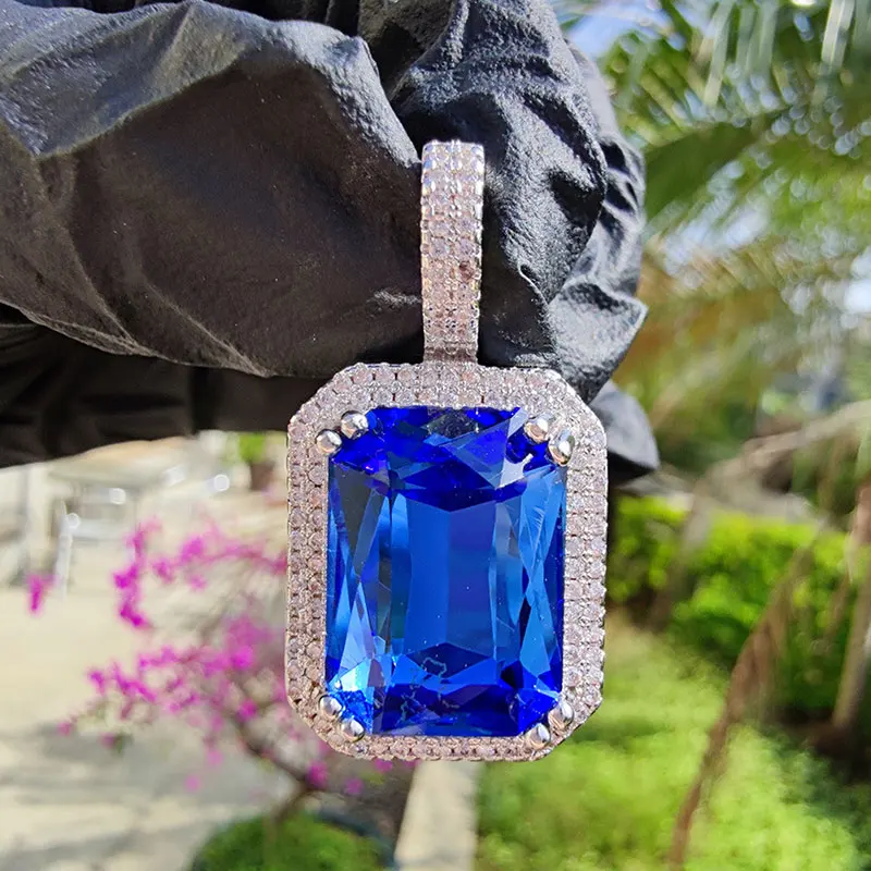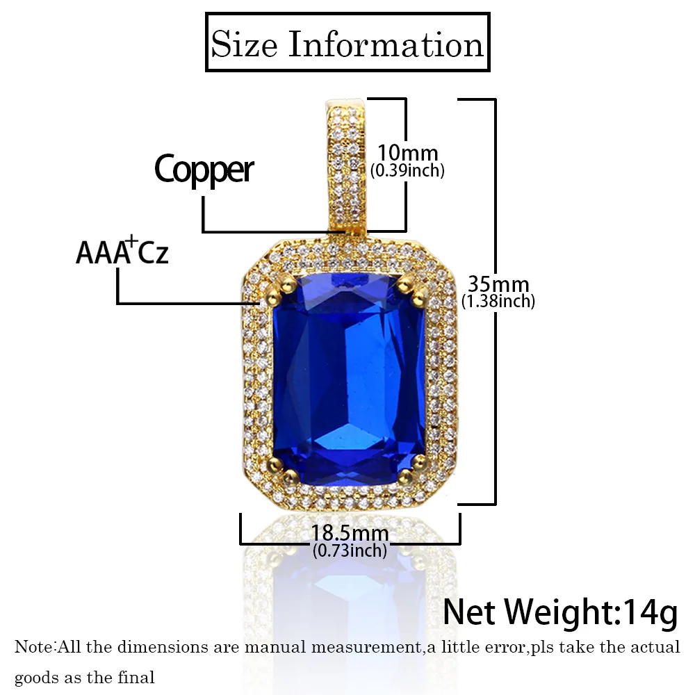 Dainty Luxury Bezel Birthstone Stone Pendant Necklace Iced Out CZ Black Sapphire Emerald Ruby Gemstone Pendant With Rope Chain