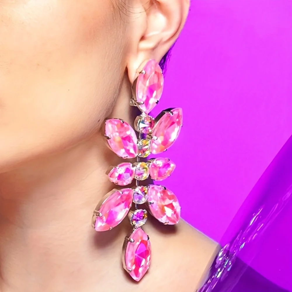 • Vedawas Exaggerated luxury rhinestone dangle earrings Bling Wedding Party Crystal geometric earrings for women accessories