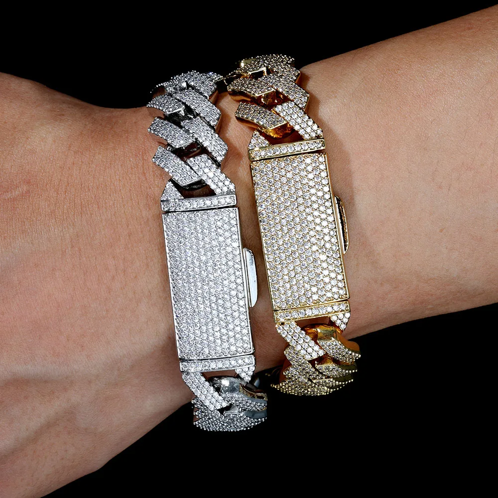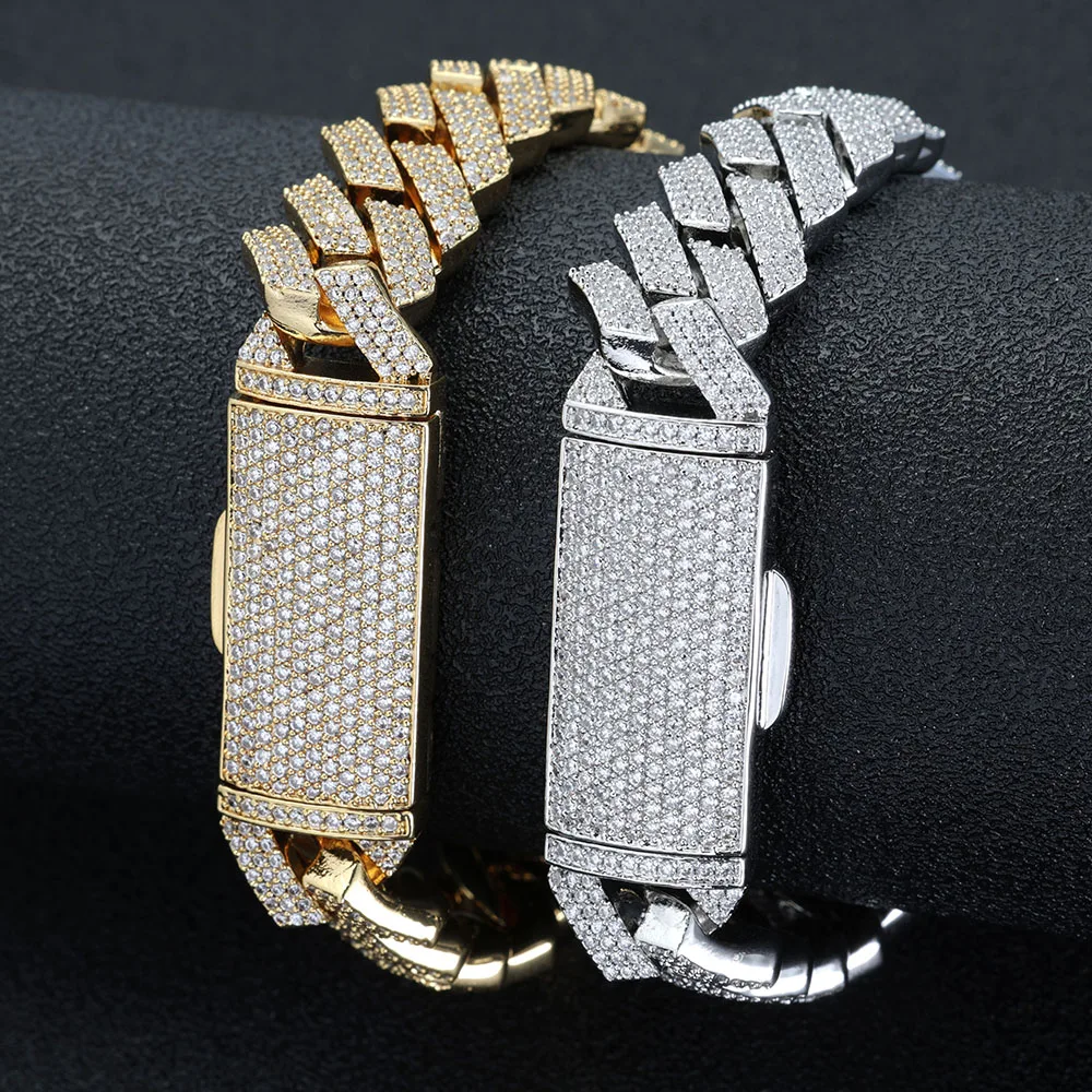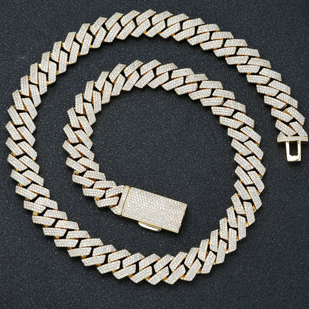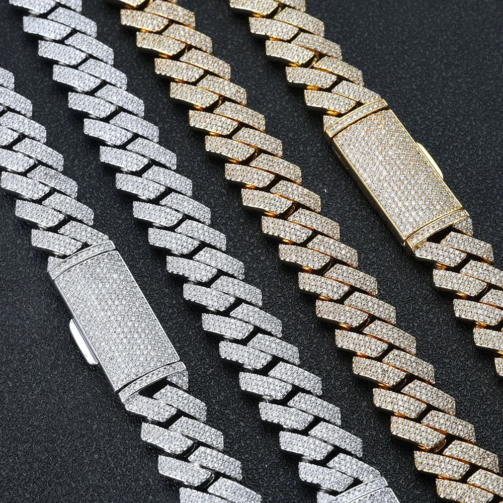 Classic Style 16mm Chunky Prong Cuban Link Chain cadena de cuerpo 18k Gold Plated Diamond Necklace Hip Hop Rock Jewelry
