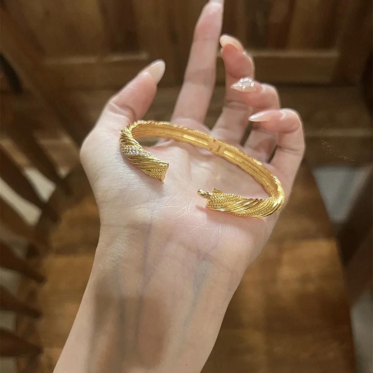 24K Gold AU999 Women's Diamond-Studded Starry Twist Bracelet - Premium craft, understated shine, timeless for all ages