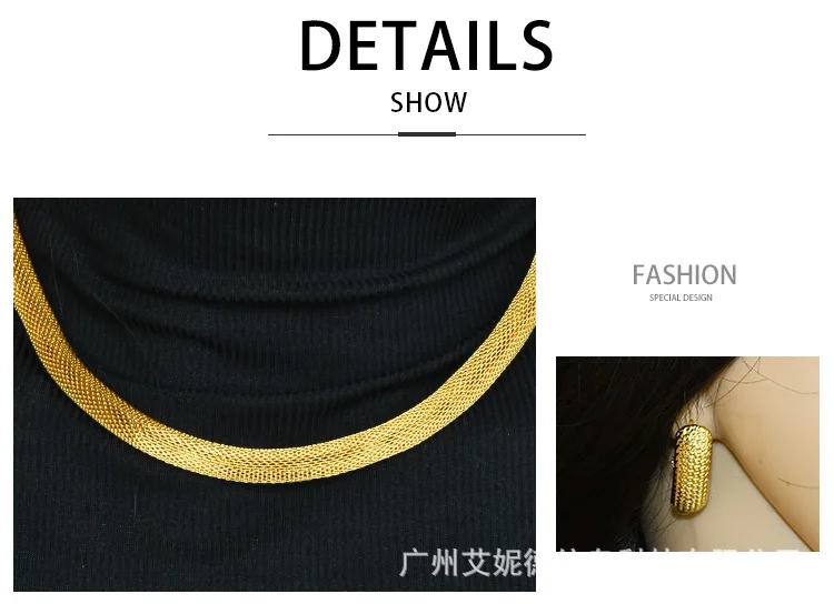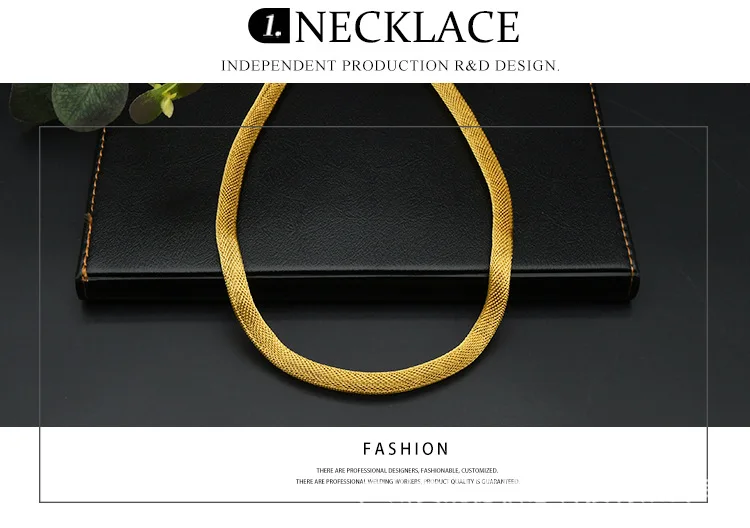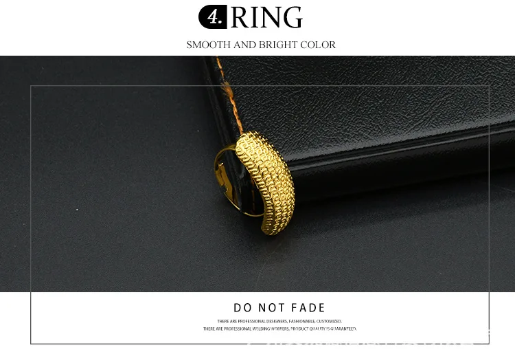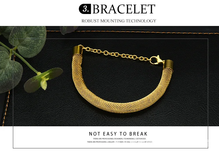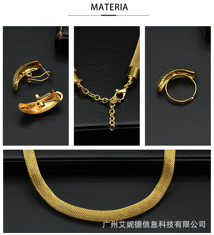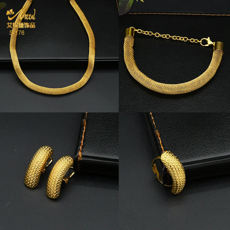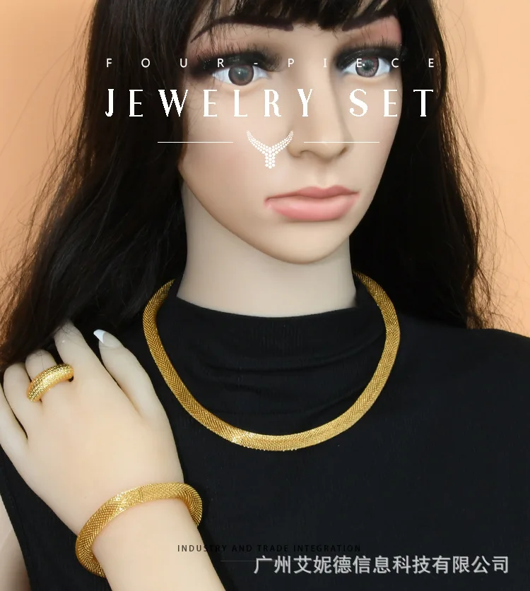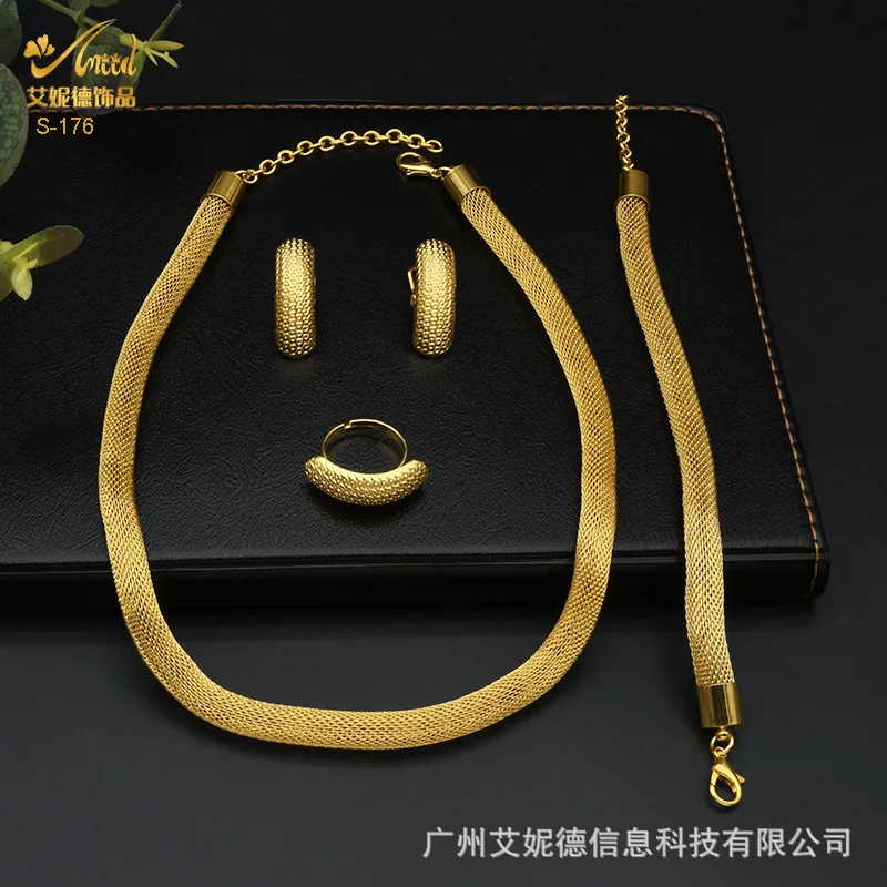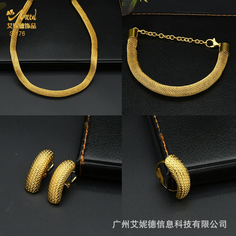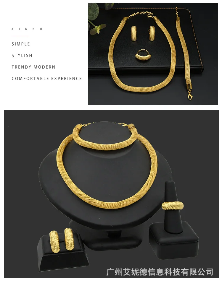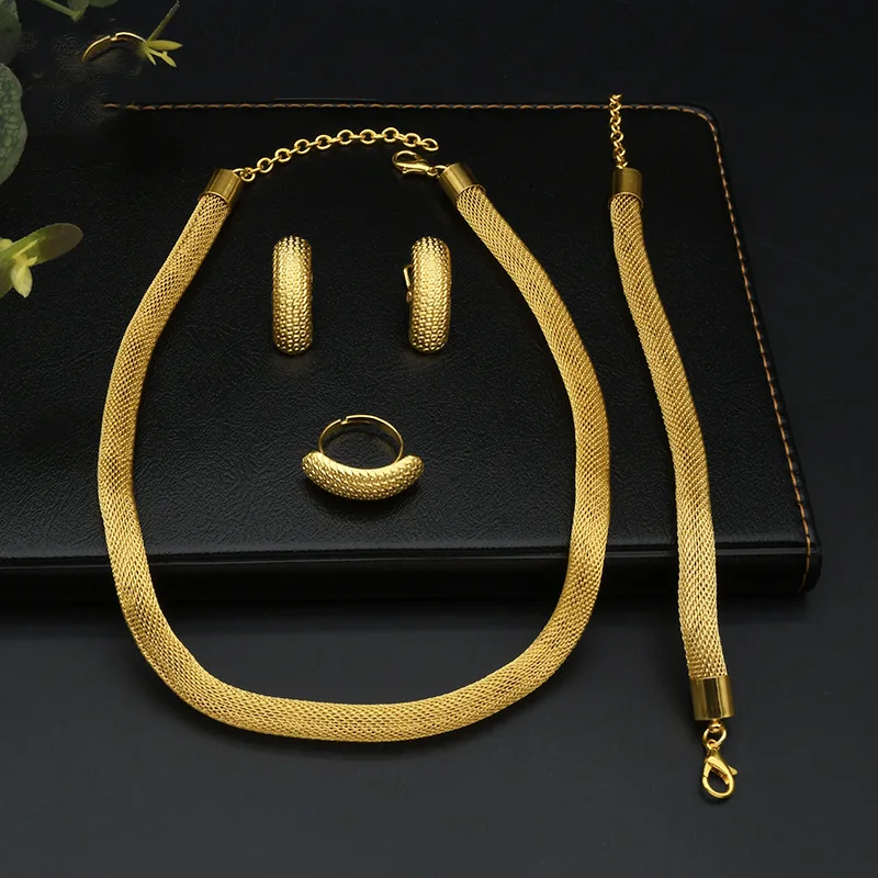• Simple Fashion Necklace Bracelet Earrings Ring 4-Piece Set Women 24K Gold AU999 - great for single or stack wear