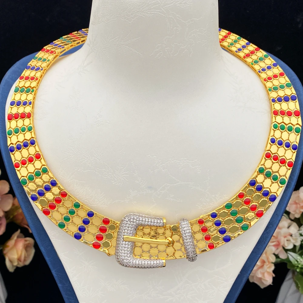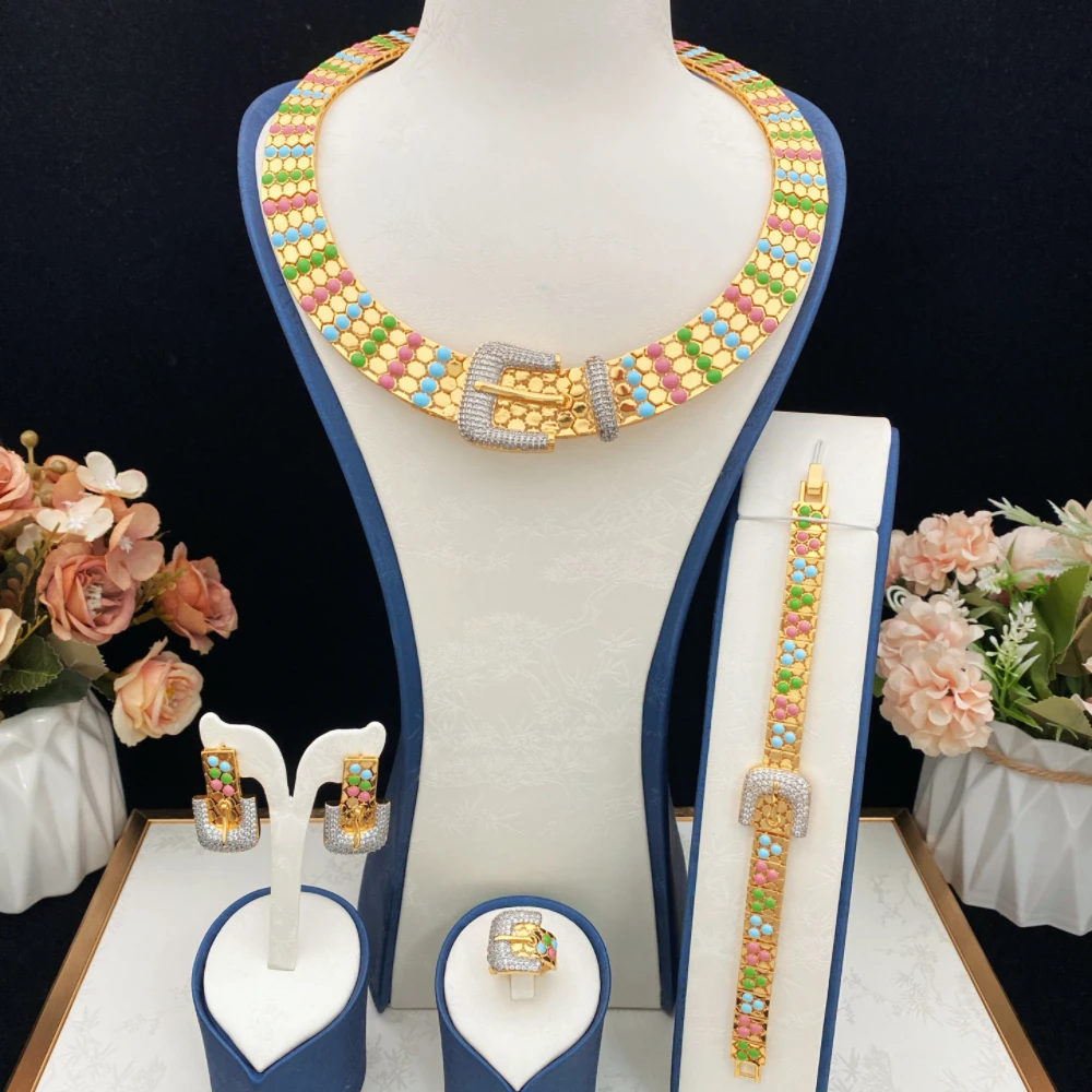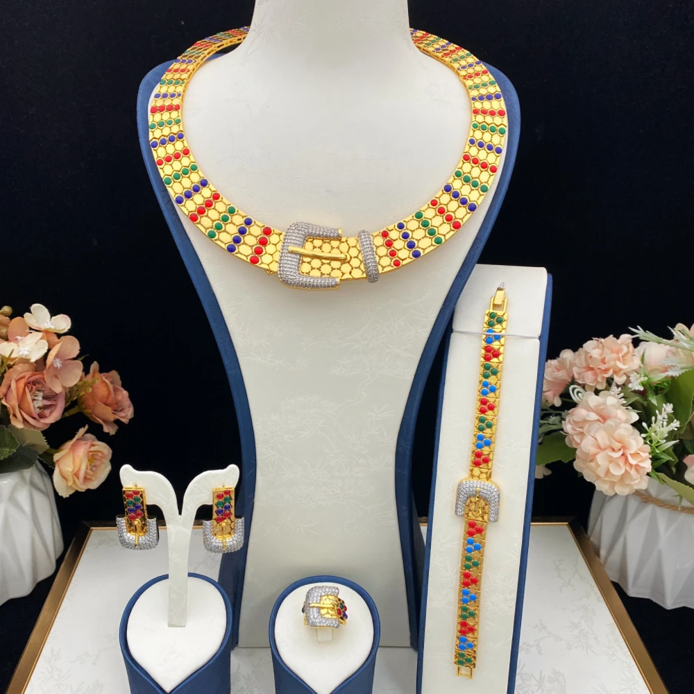 • Trendy Geometric Jewelry Set 4Pcs Gold Plated Copper Bracelet Ring Necklace Earrings for Party 2025 Fashion