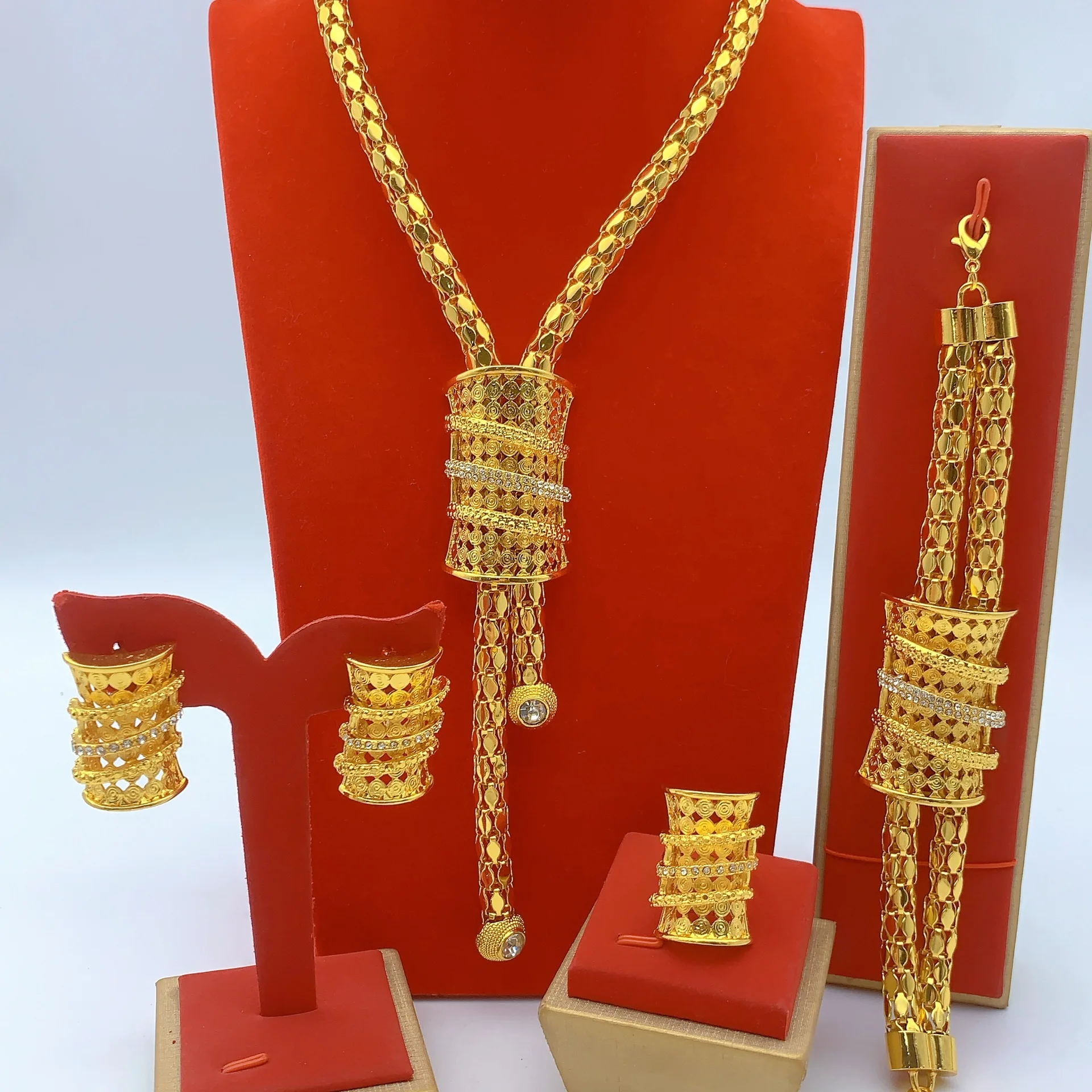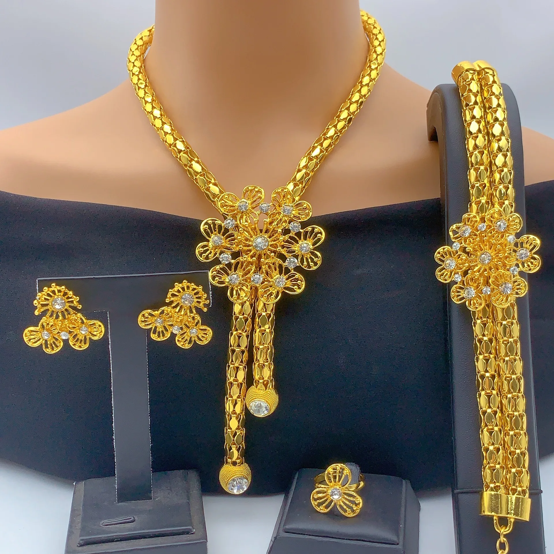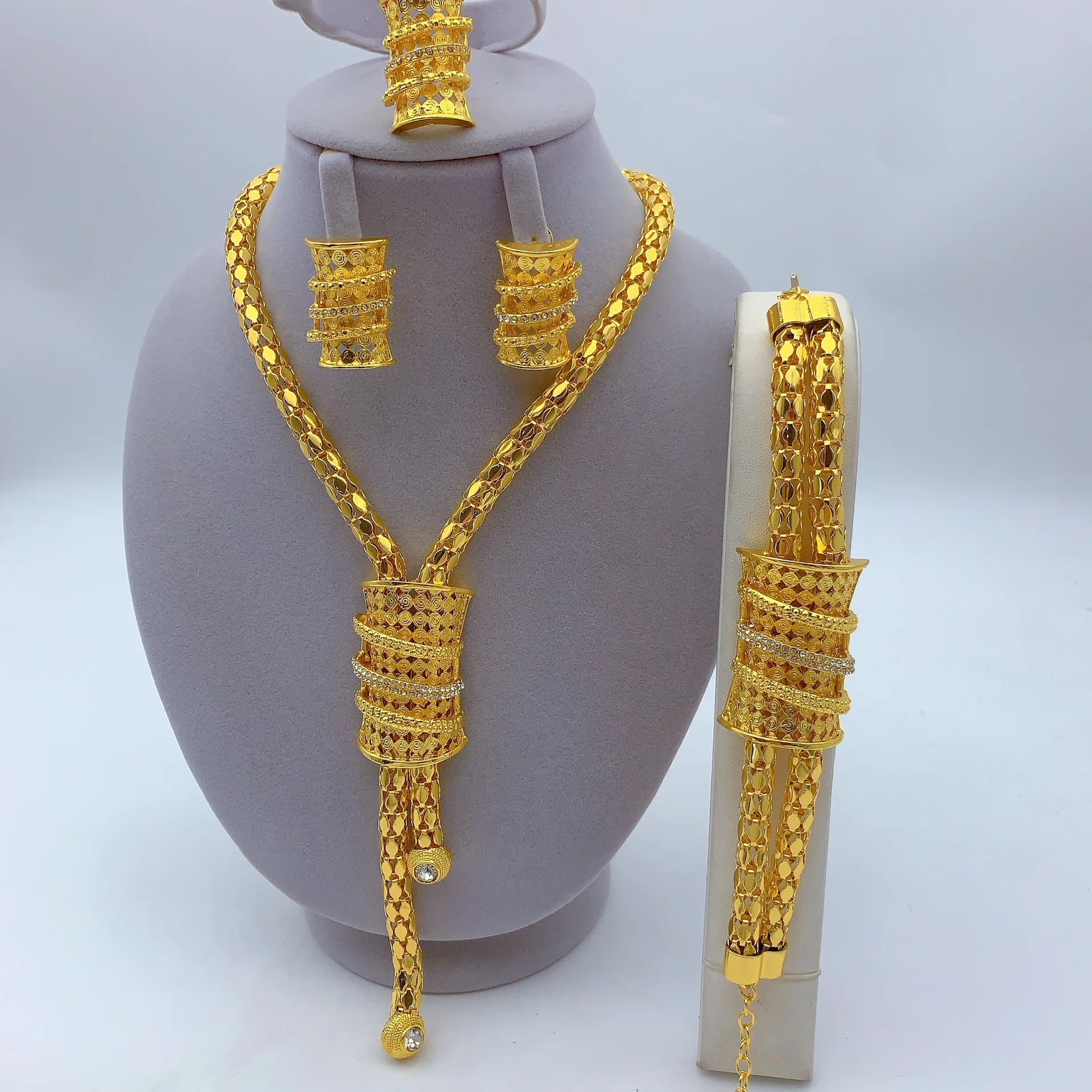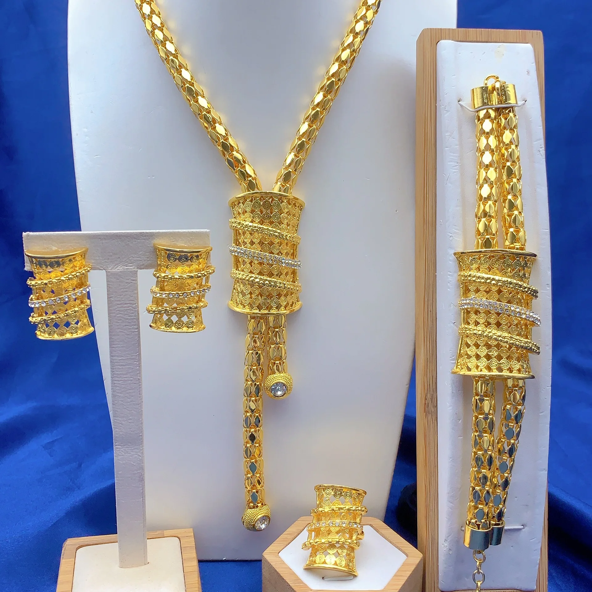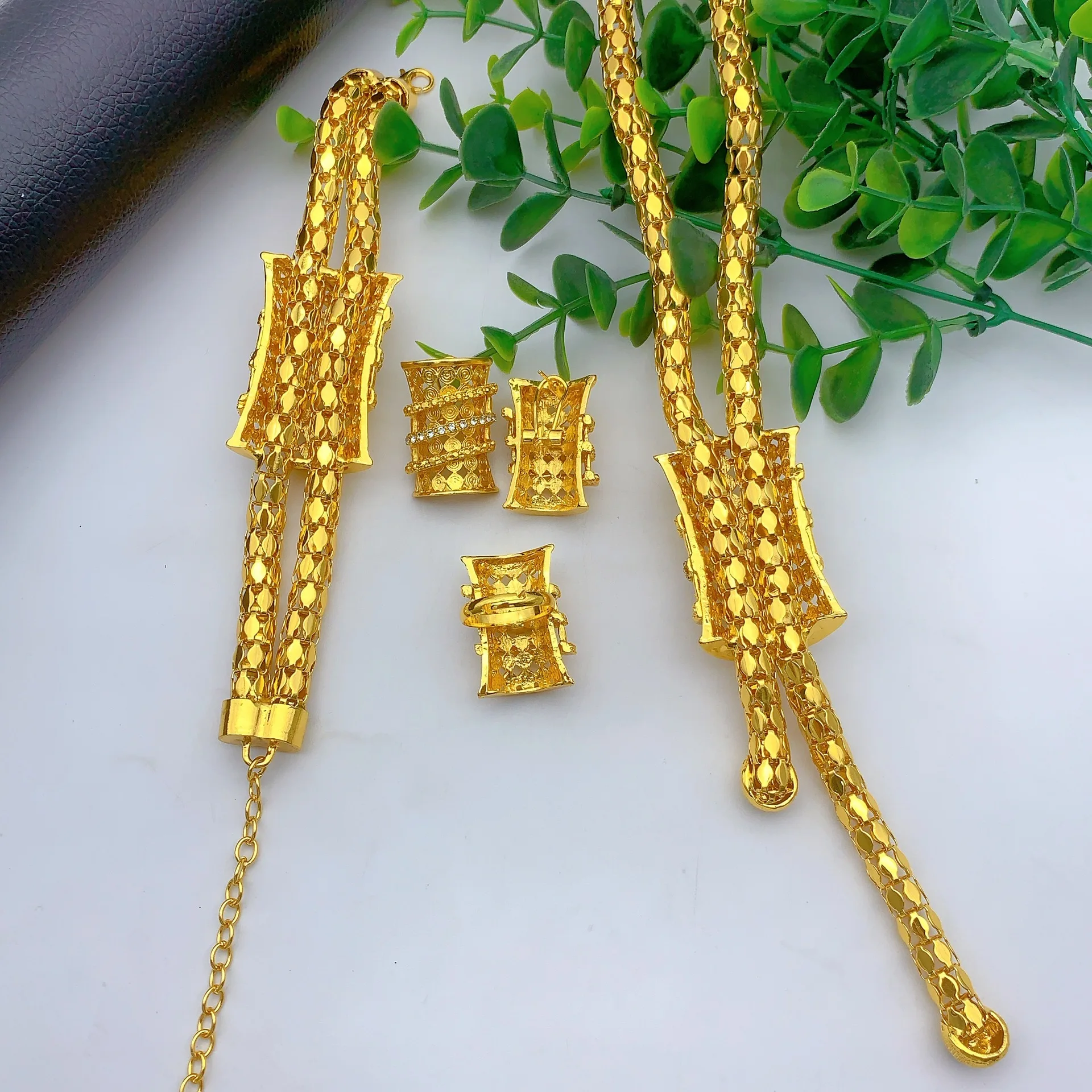 Bright Shiny Stylish Diamond Set Necklace Earrings Bracelet Ring For Women 24K Gold AU999 glamorous