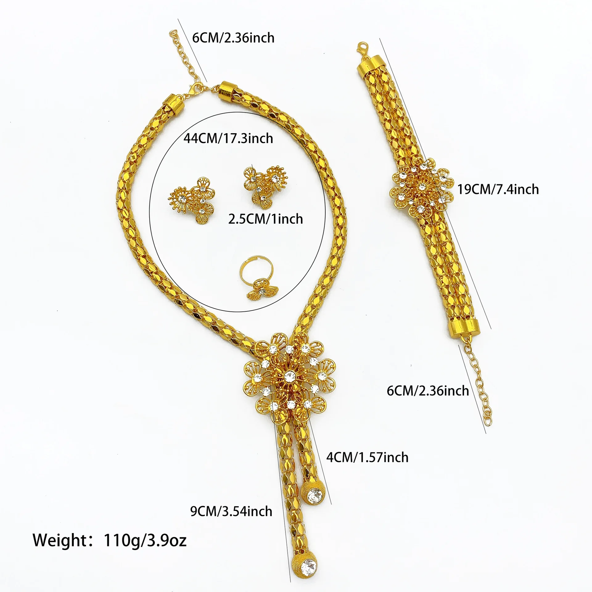 • Bright Shiny Stylish Diamond Set Necklace Earrings Bracelet Ring For Women 24K Gold AU999 glamorous