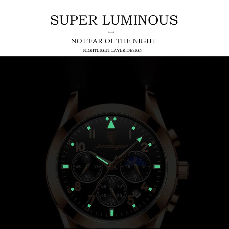 2021 Fashion New Mens Watches Sports Leather Watch Waterproof Luminous Top Brand Luxury Quartz Wristwatch with Date
