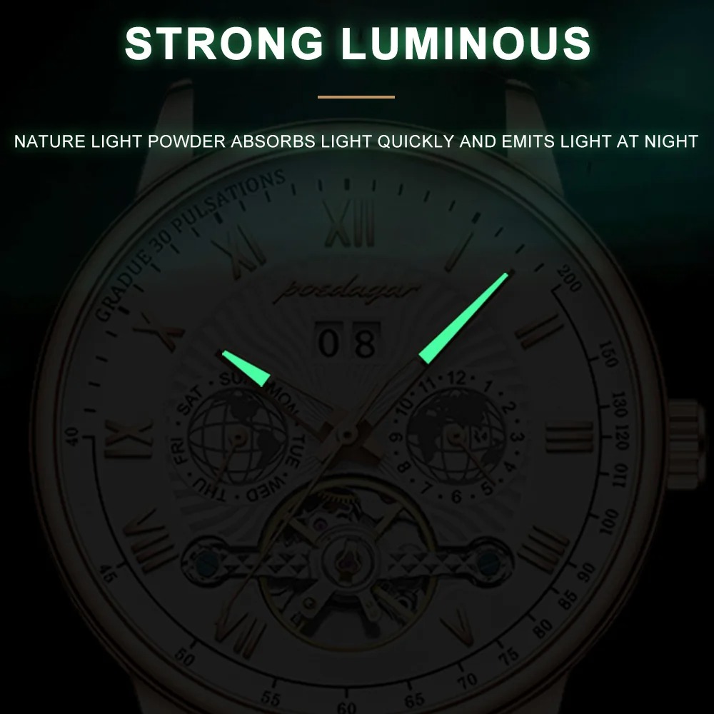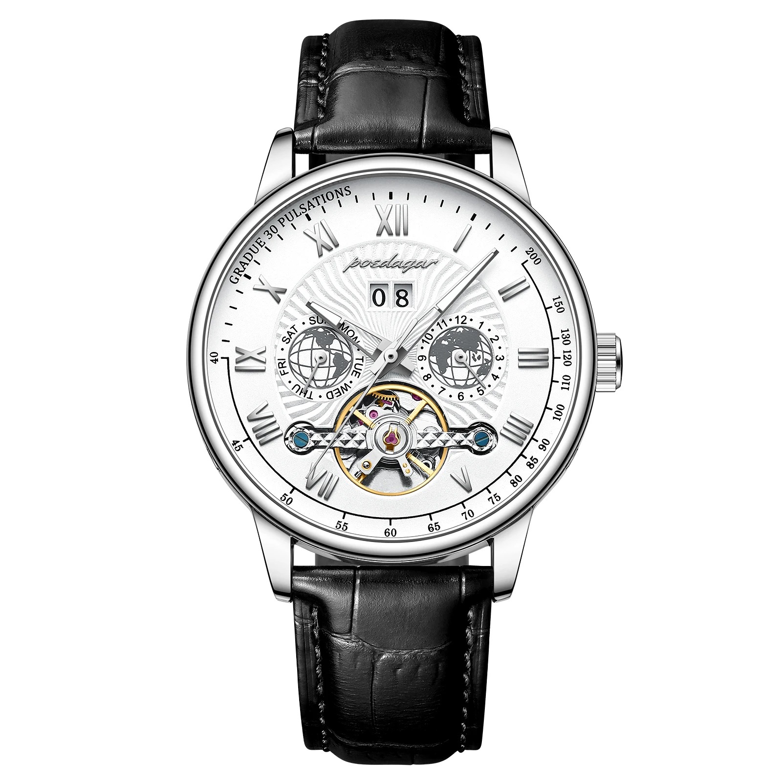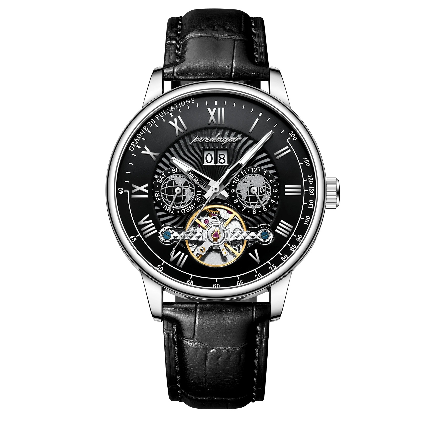 Automatic Mechanical Tourbillon Business Watch Casual Date&Week&Month Luminous Waterproof Leather Men Watch Hot Relojes