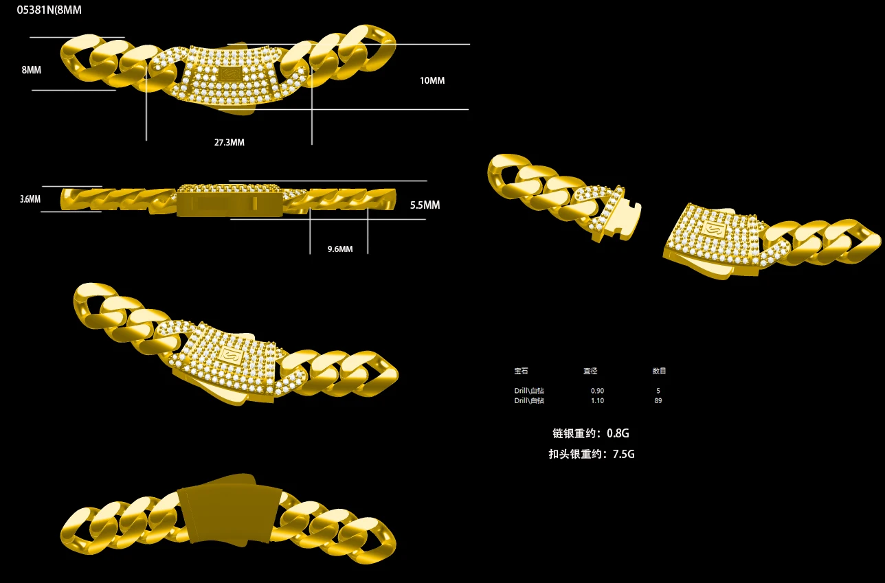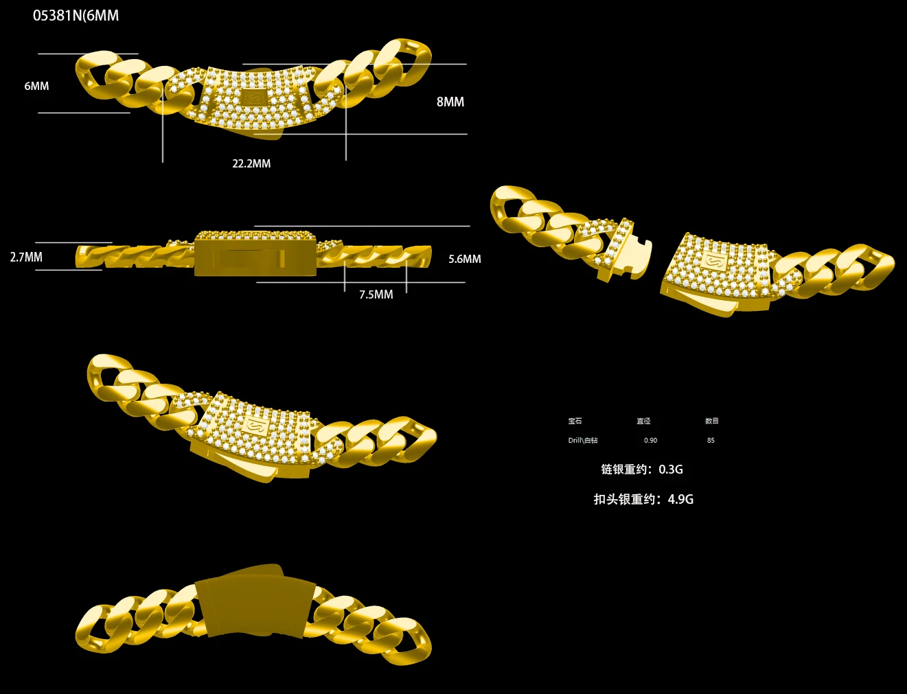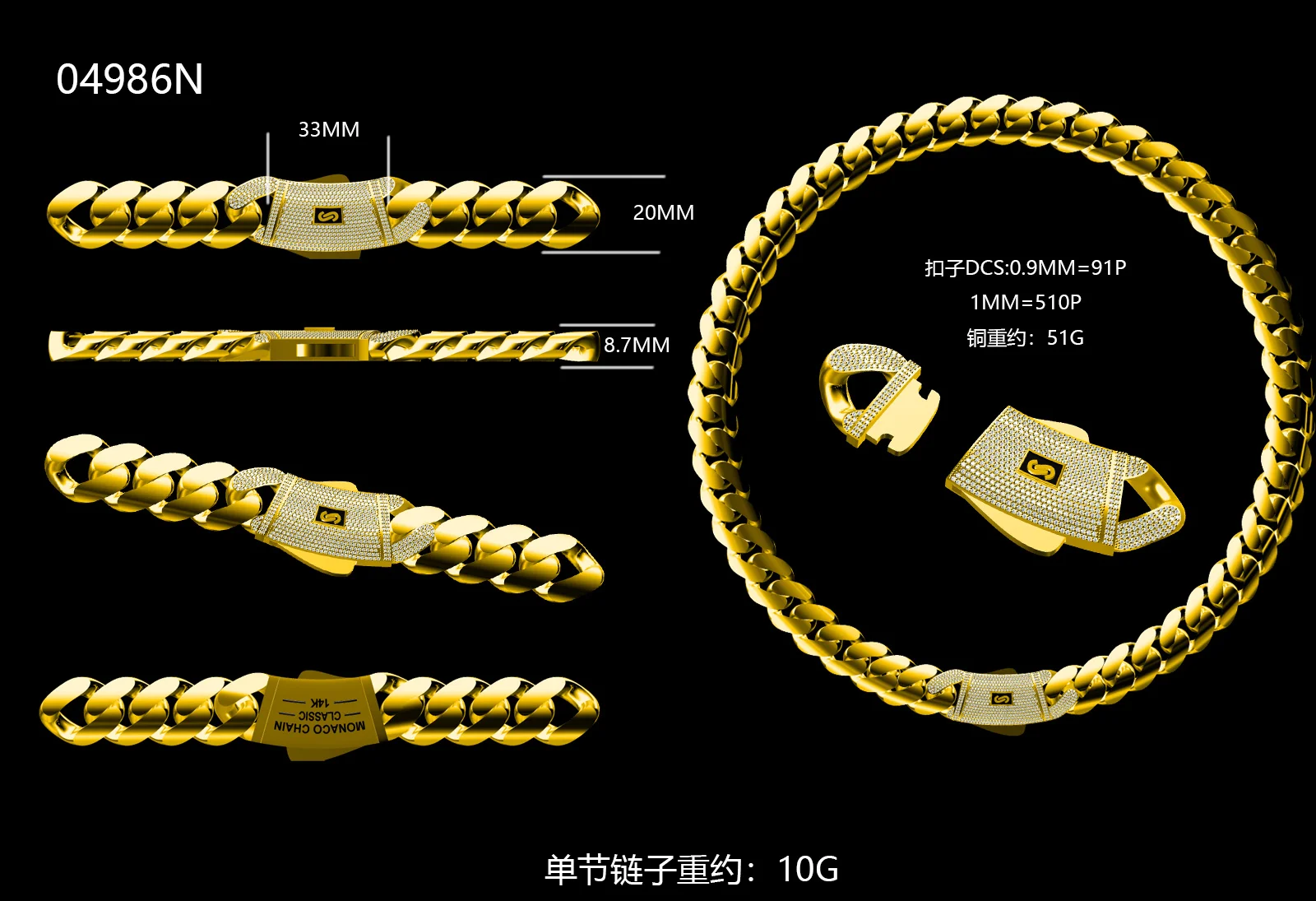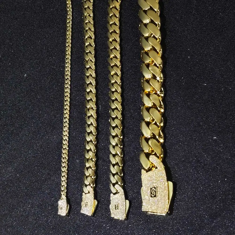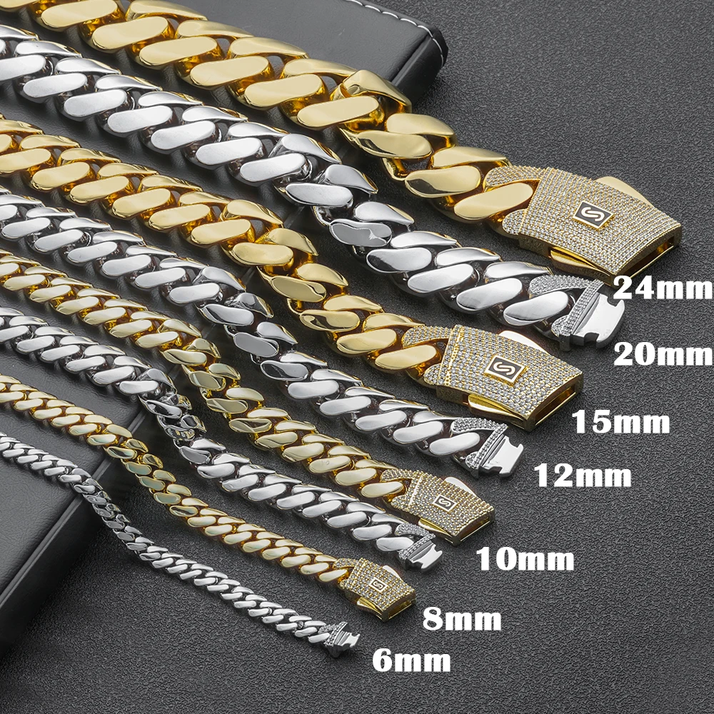 Golden 14k Plated Cuban Necklace Men 6mm-20mm Brass Miami Bracelet Hip-hop Shiny Zircon Spring Buckle Monaco Chain