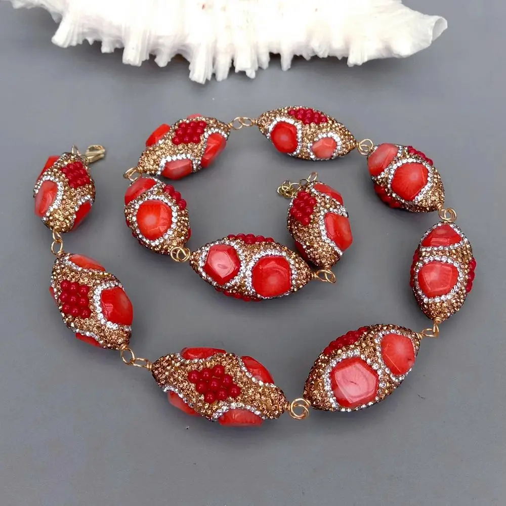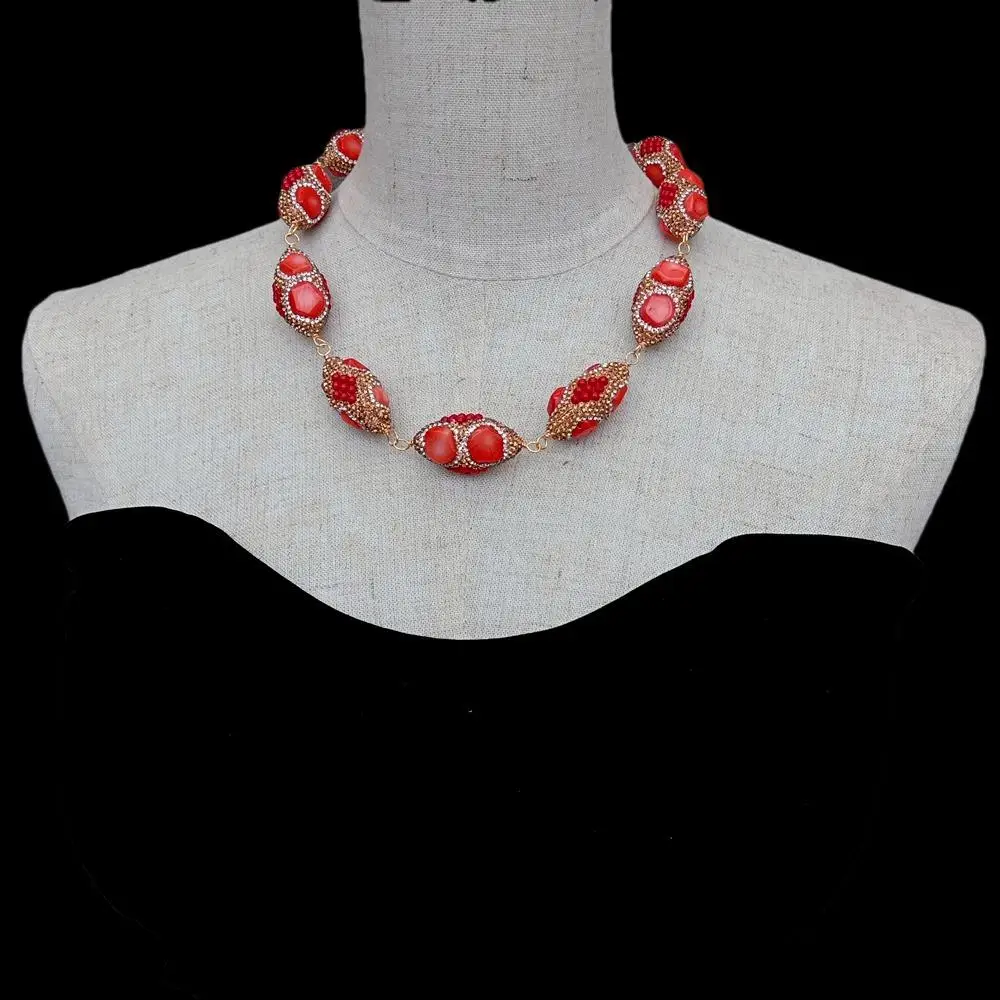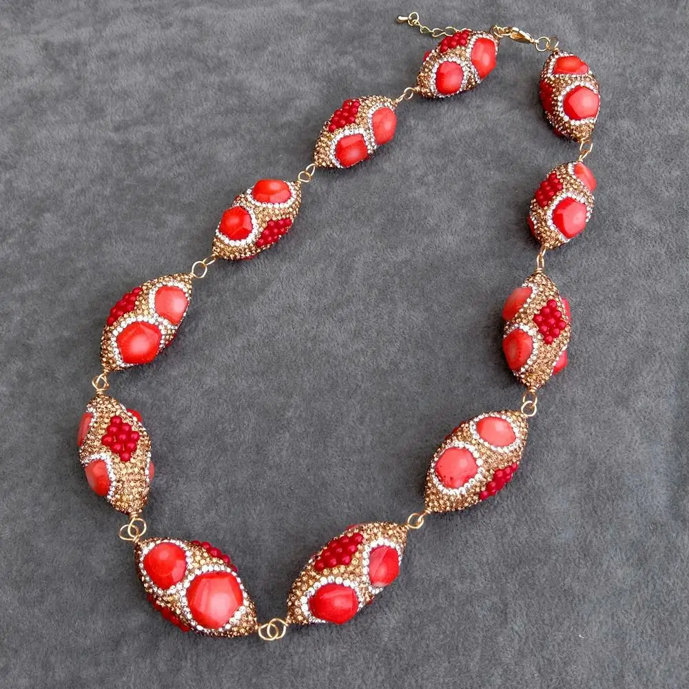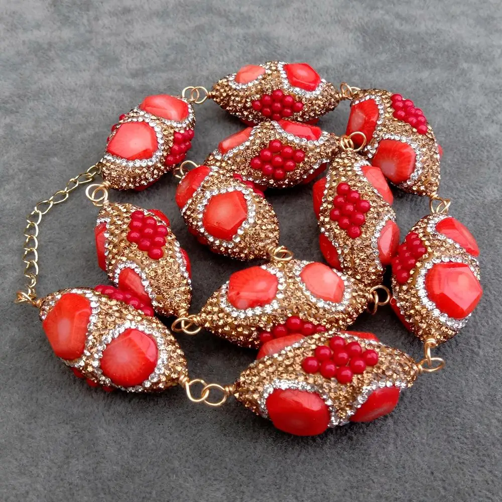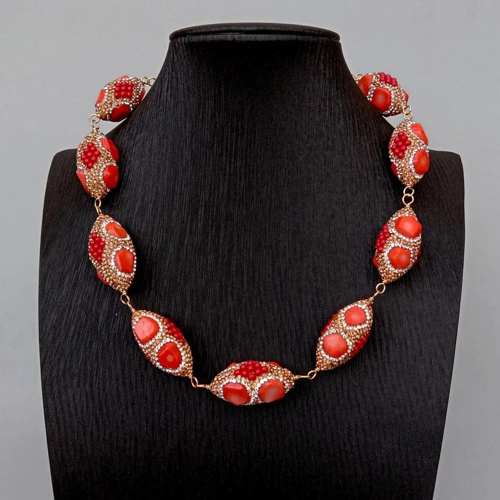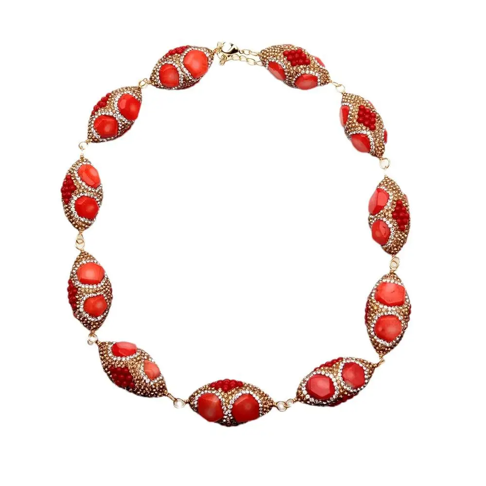 • Golden Crystal Pave Orange Red Coral Bead Choker wrap Necklace Fashionable Women