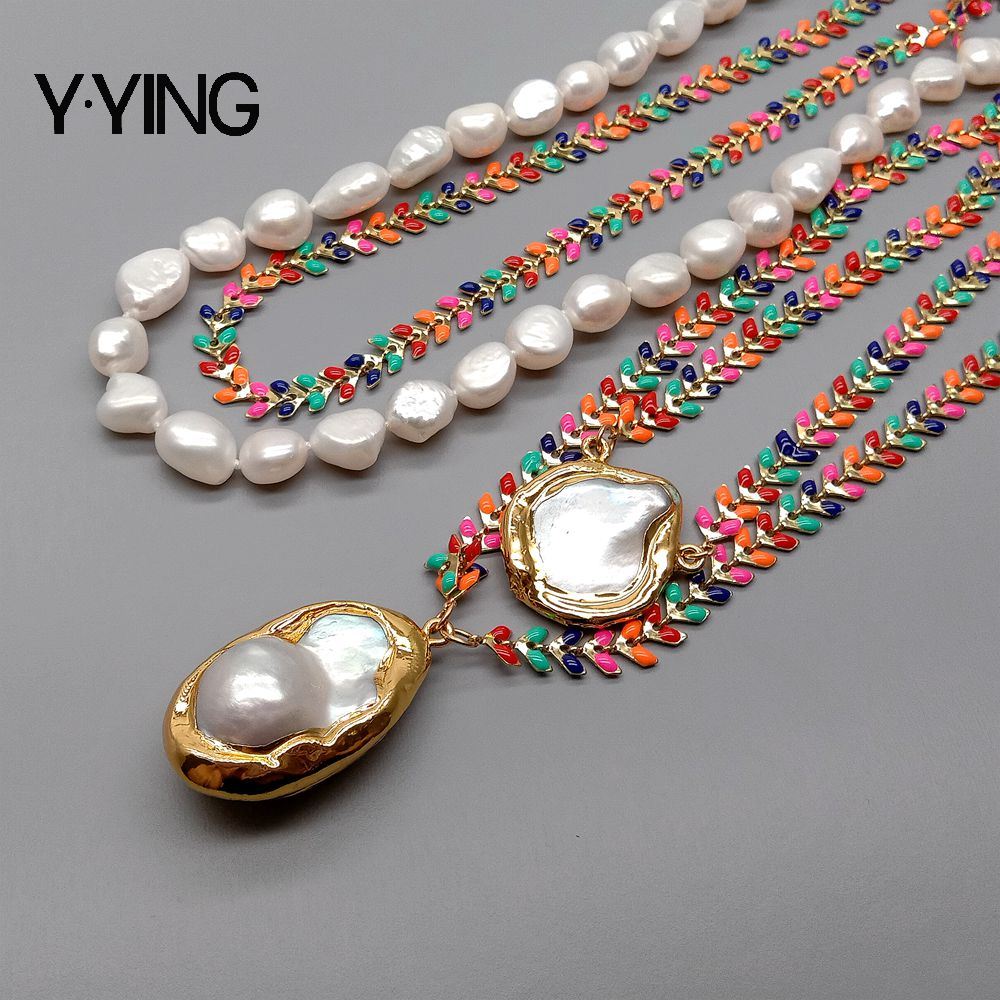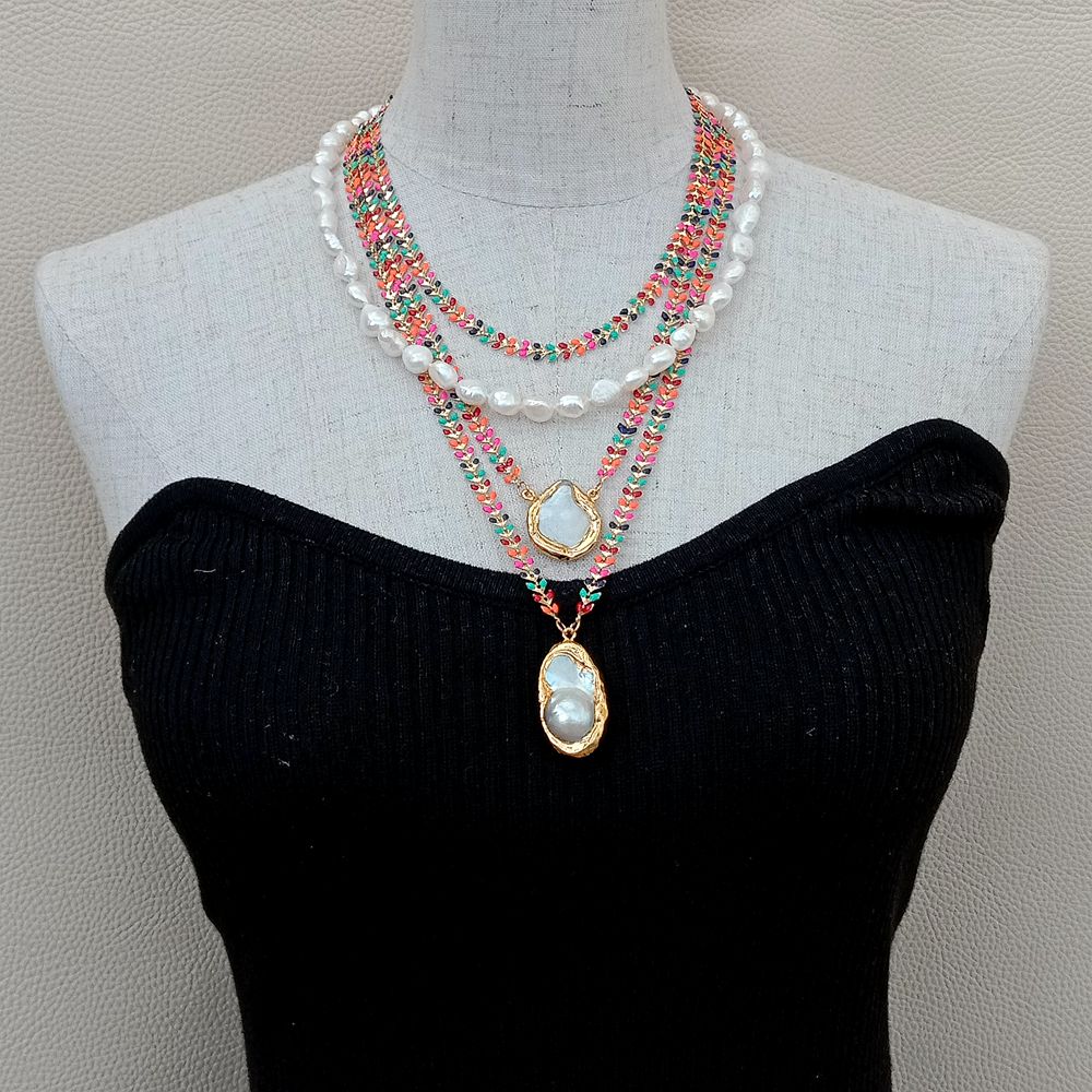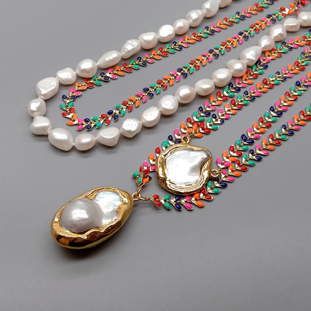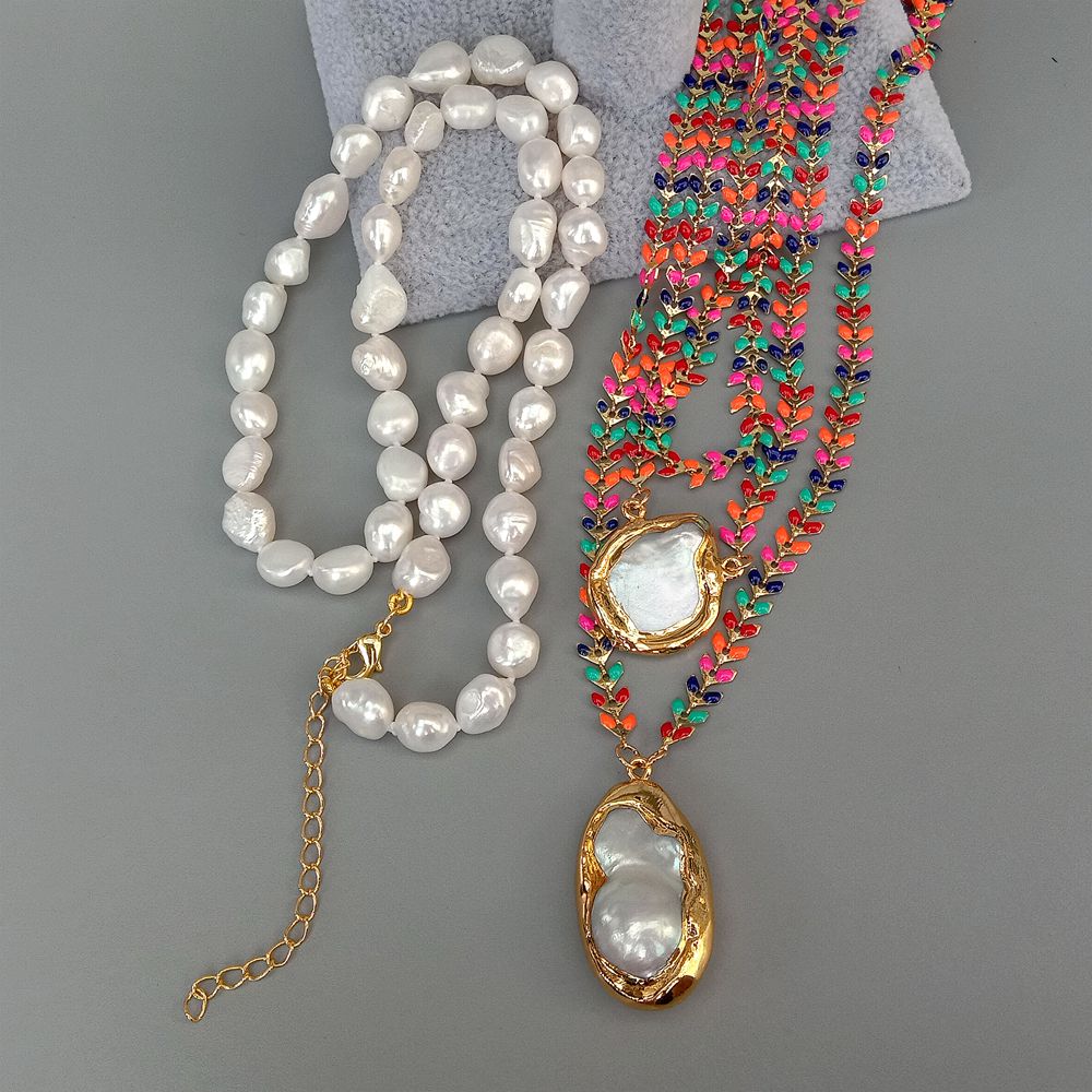 Gems Info: Fresh water cultured pearl, white baroque pearl, Multi Color Enamel Chain, white keshi pearl charm, good quality, high luster!