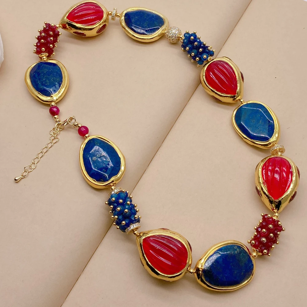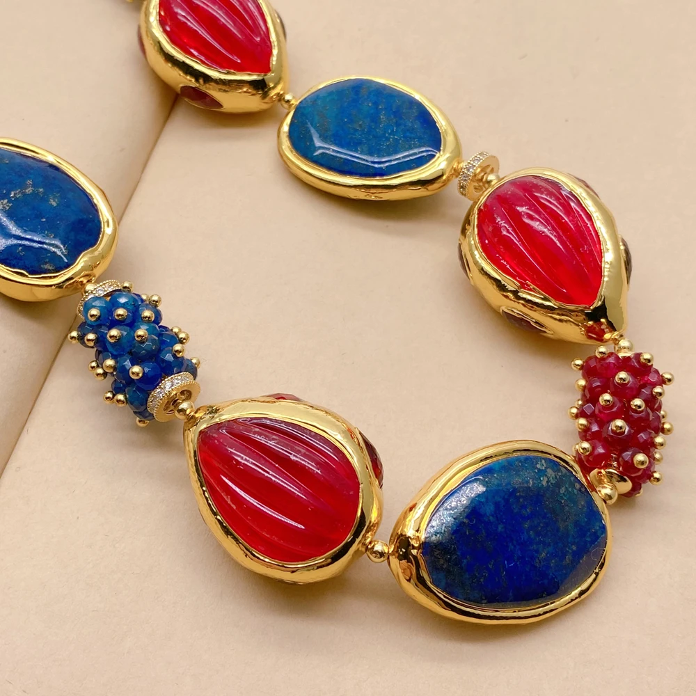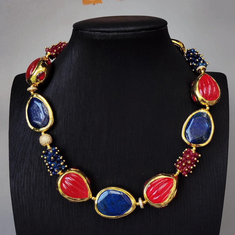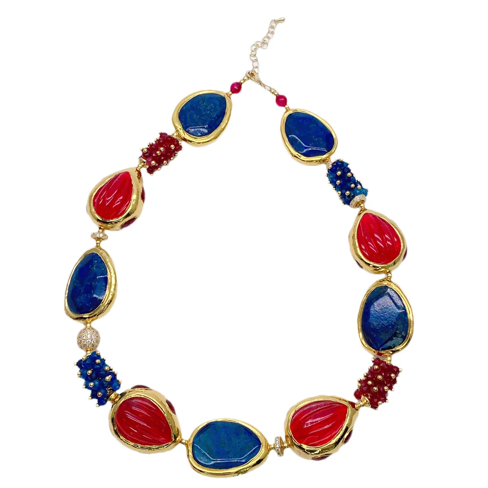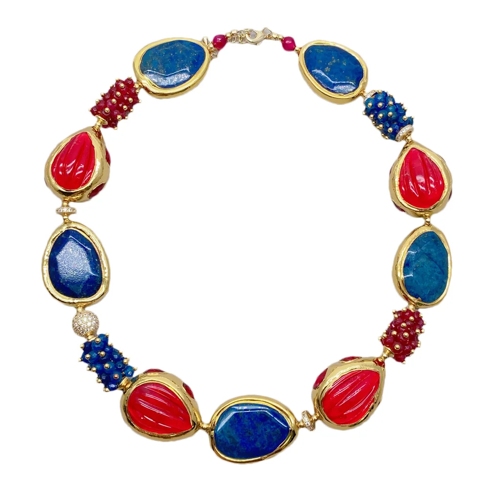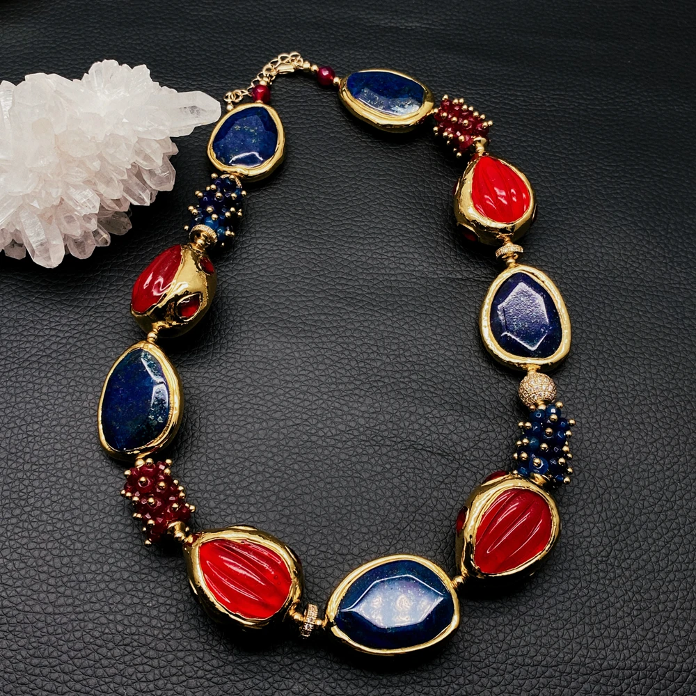 Gems Info: lapis and red crystal with gold plated edge. blue and red jade.