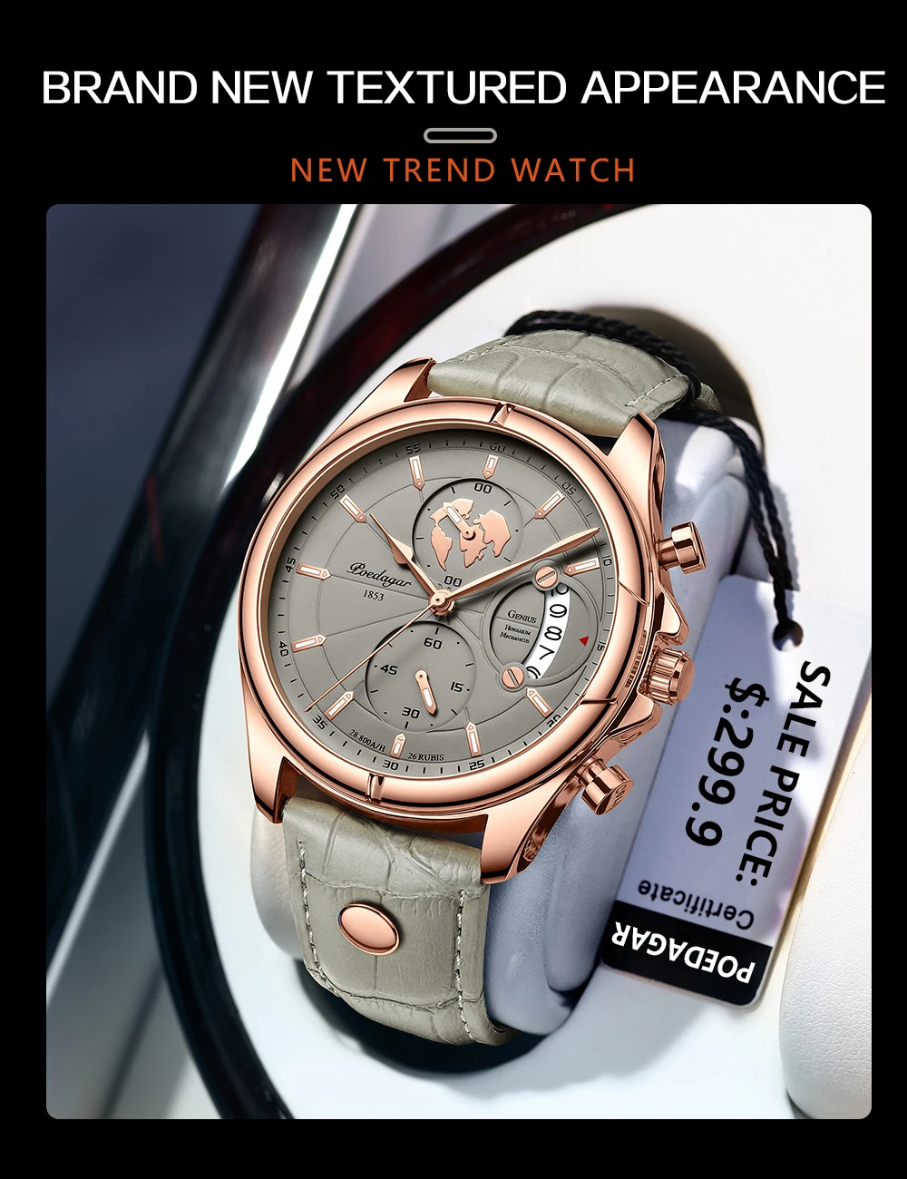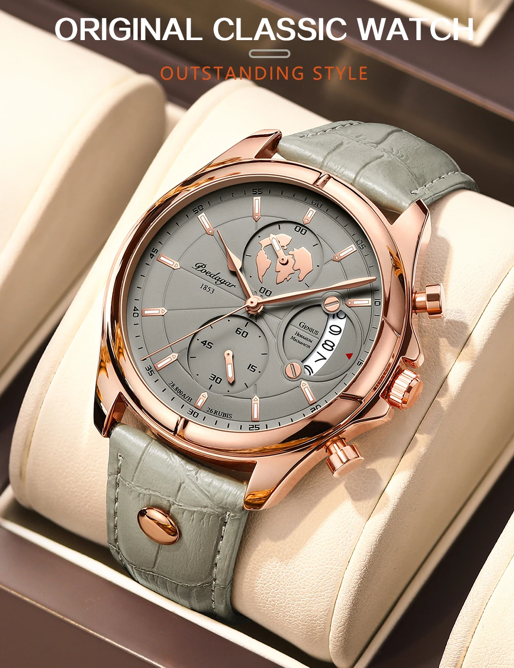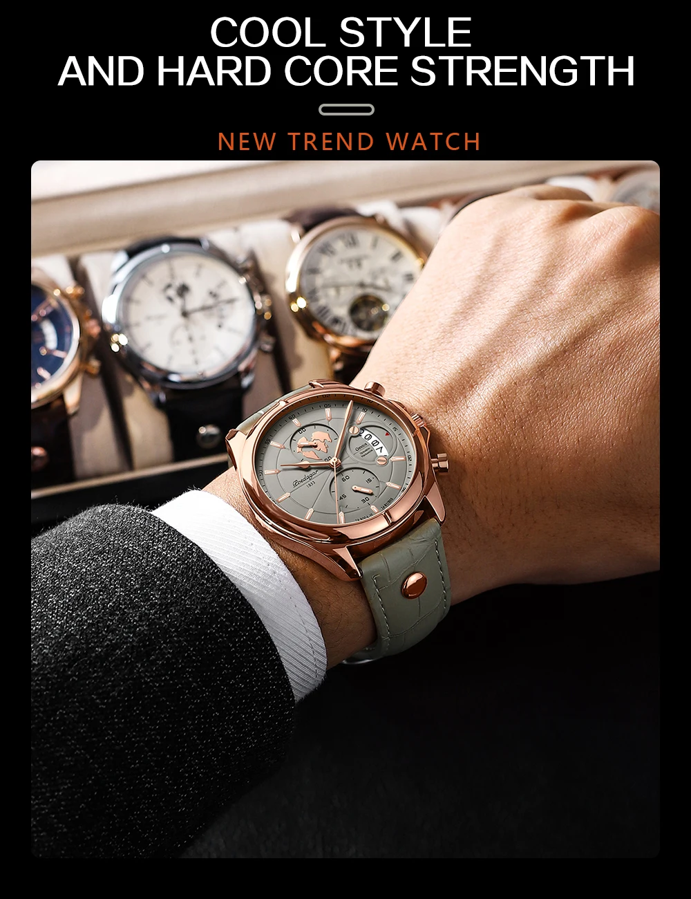 • Luxury Brand Man Watch Chronograph Date Waterproof Leather Watches For Men Casual Male Clock Sports Quartz Men's Watch