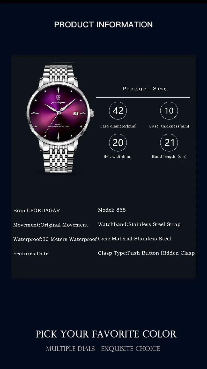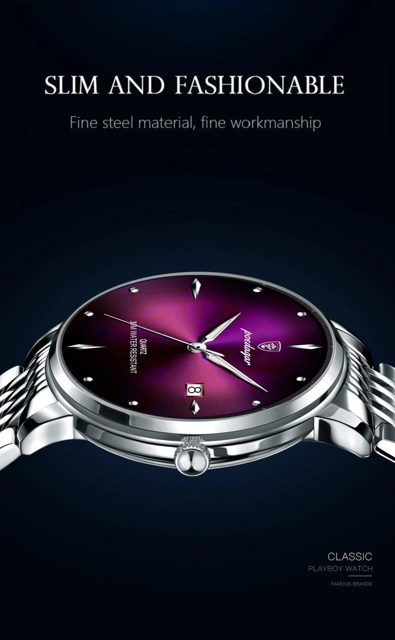 • Luxury Sports Men Watch Waterproof Luminous Stainless Steel Date Wristwatch For Man Quartz Clock Business Men's Watches