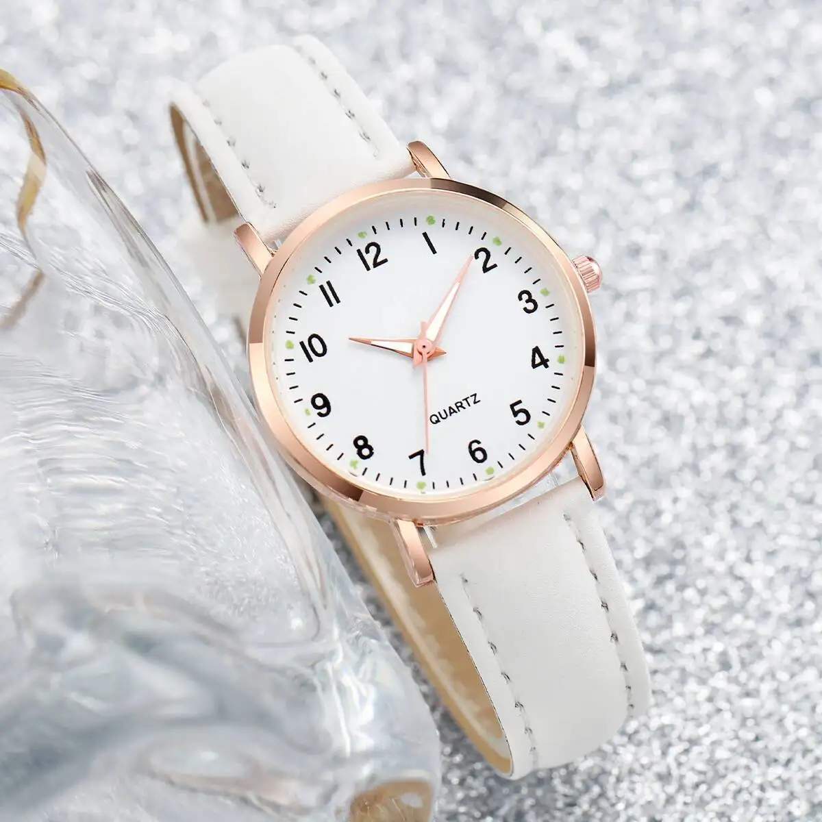 1/3/4/5PCS Fashion Arabic Dial Women Quartz Watch Casual Leather Strap Wristwatch for Girls Clock Gift(Without Box)