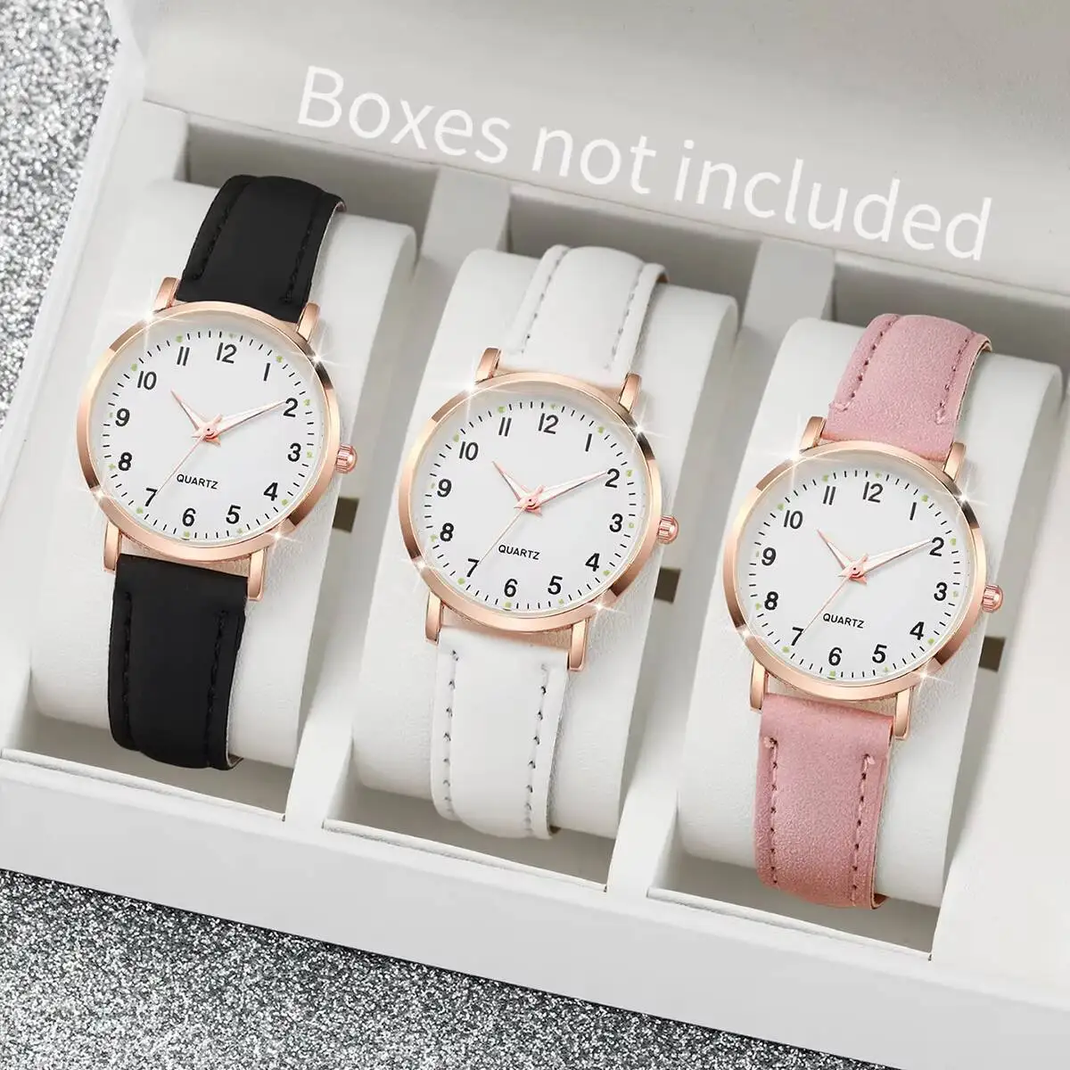 • 1/3/4/5PCS Fashion Arabic Dial Women Quartz Watch Casual Leather Strap Wristwatch for Girls Clock Gift(Without Box)