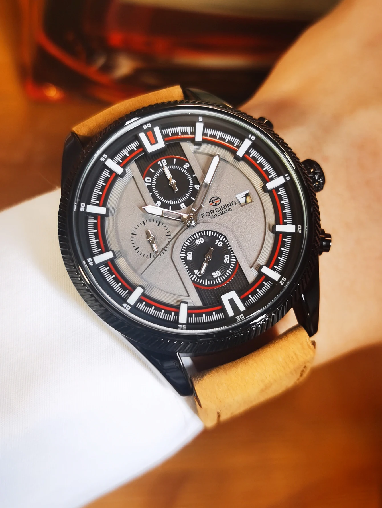 • Forsining Fashion Business Mechanical Watch for Men Luminous Hands Leather Strap Sports Automatic Mens Watches Top Brand Gifts