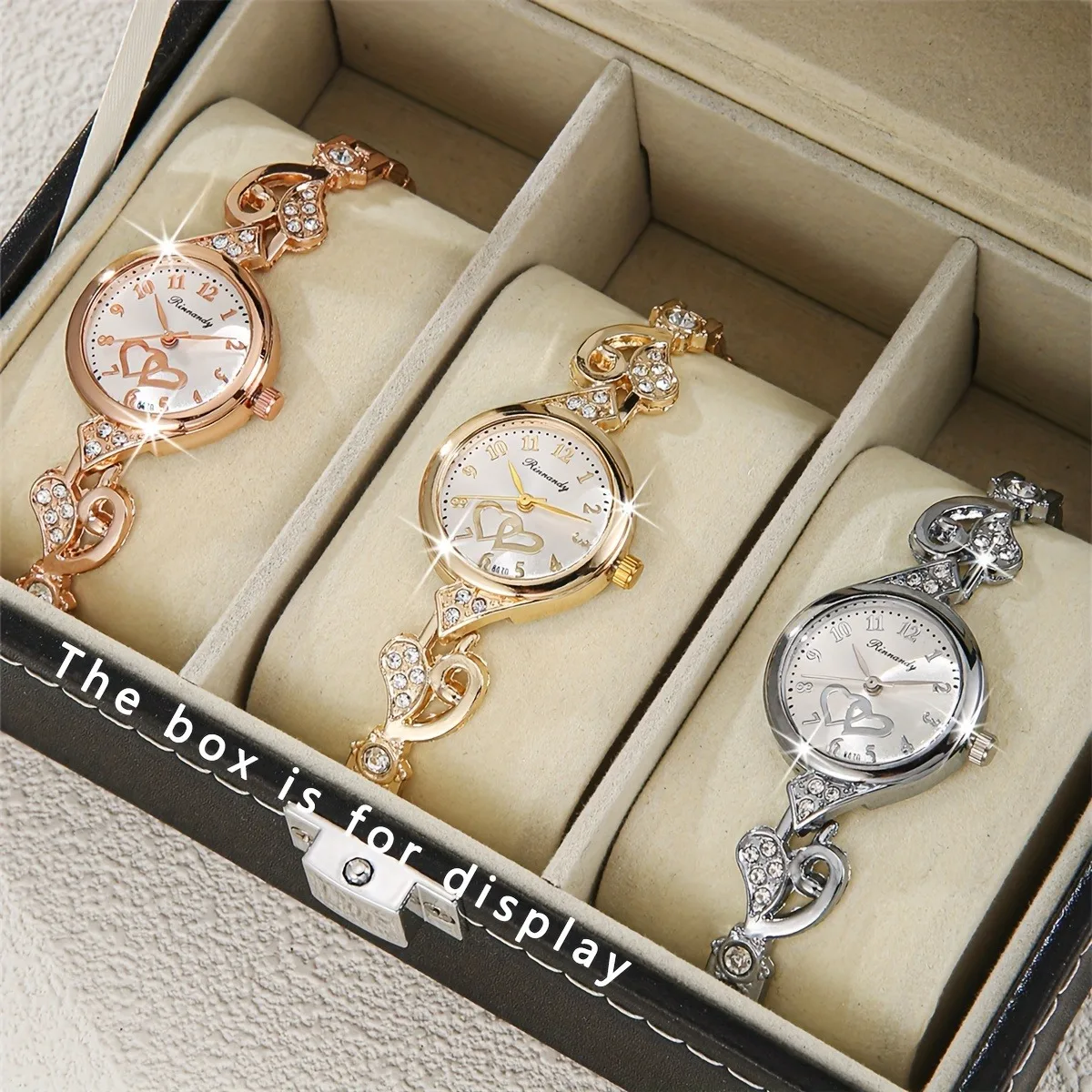 1/3PCS Elegant Women Quartz Watch Fashion Rhinestone Hearts Bracelet Band Ladies Wristwatch Reloj Mujer(Without Box)