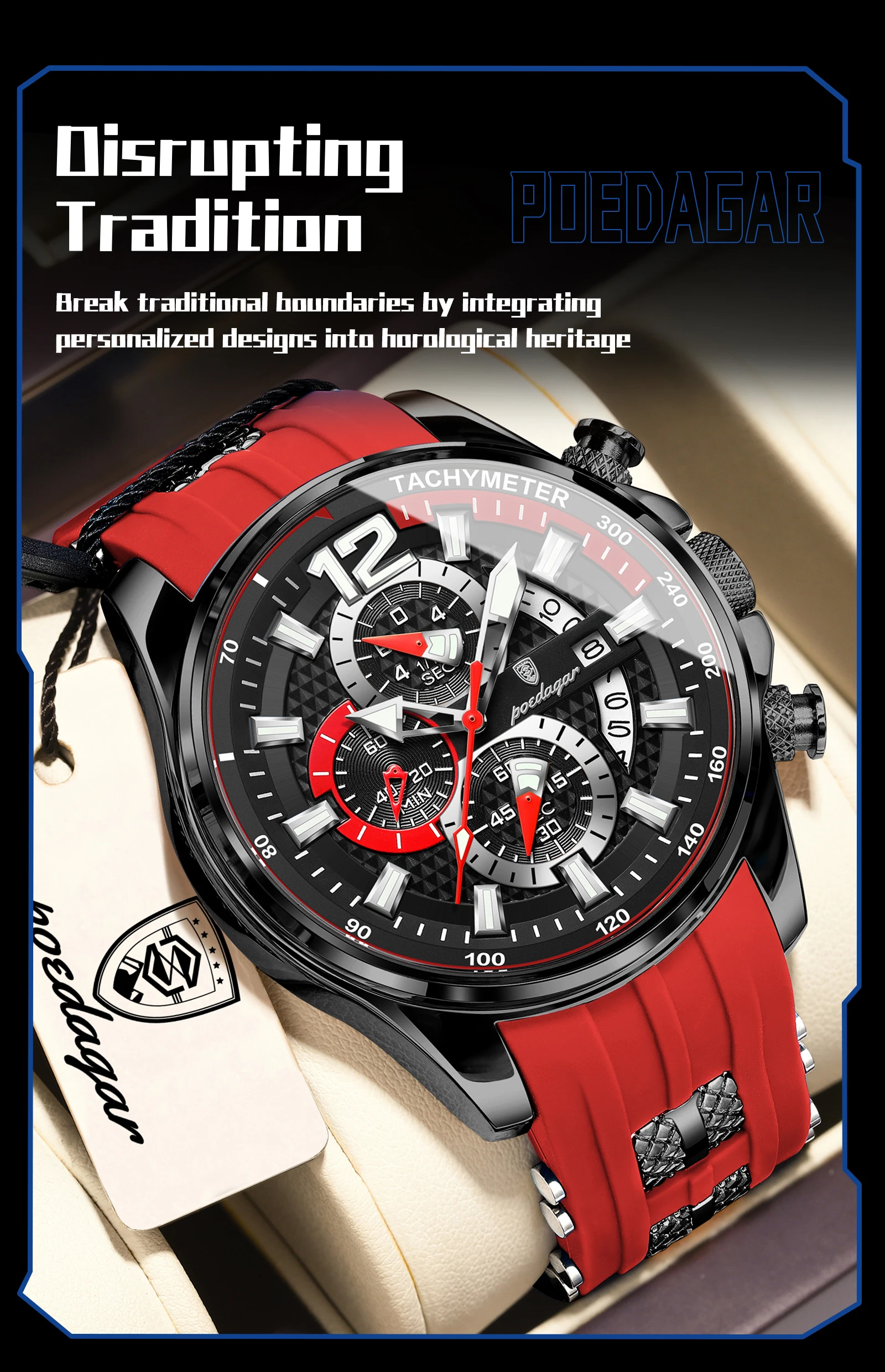 • Functional Watch For Men Date Chronograph Luminous Waterproof Silicone Classic Male Watch Quartz Original Men's Watches