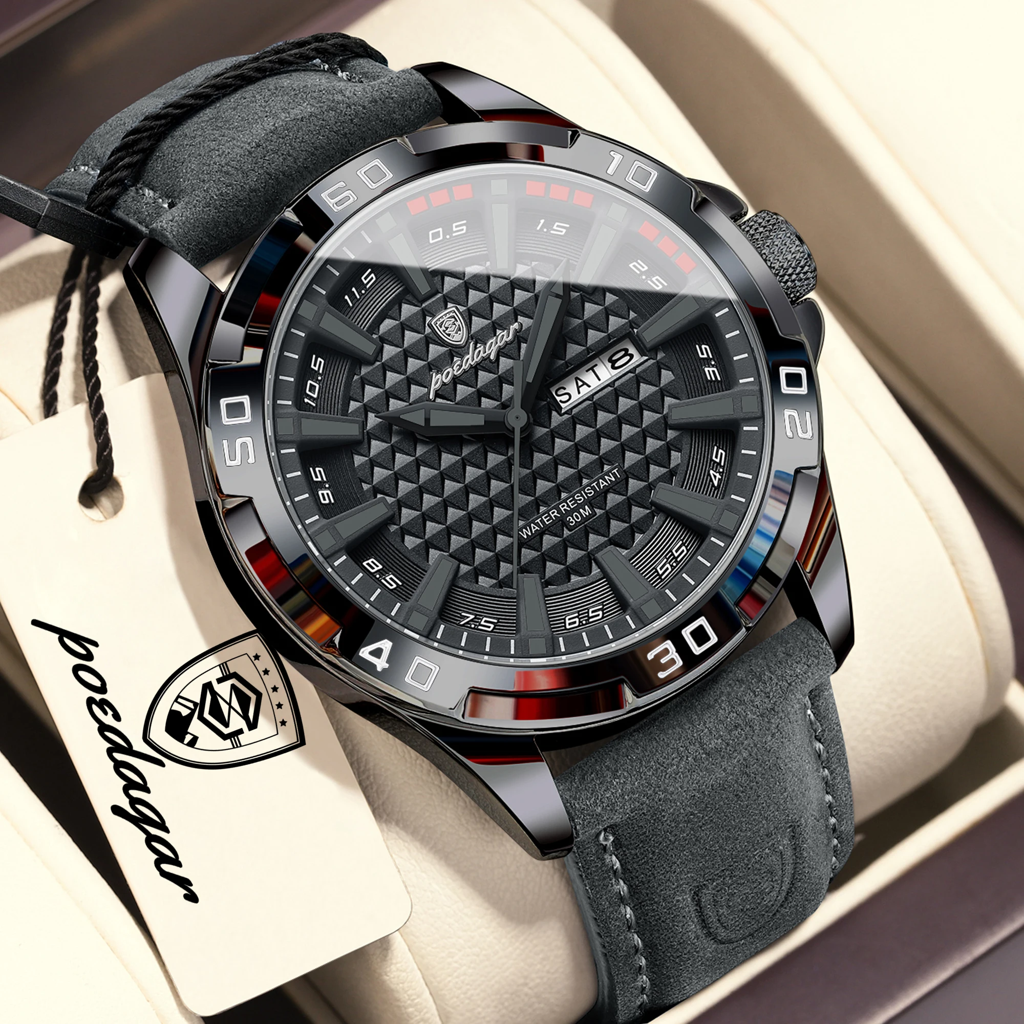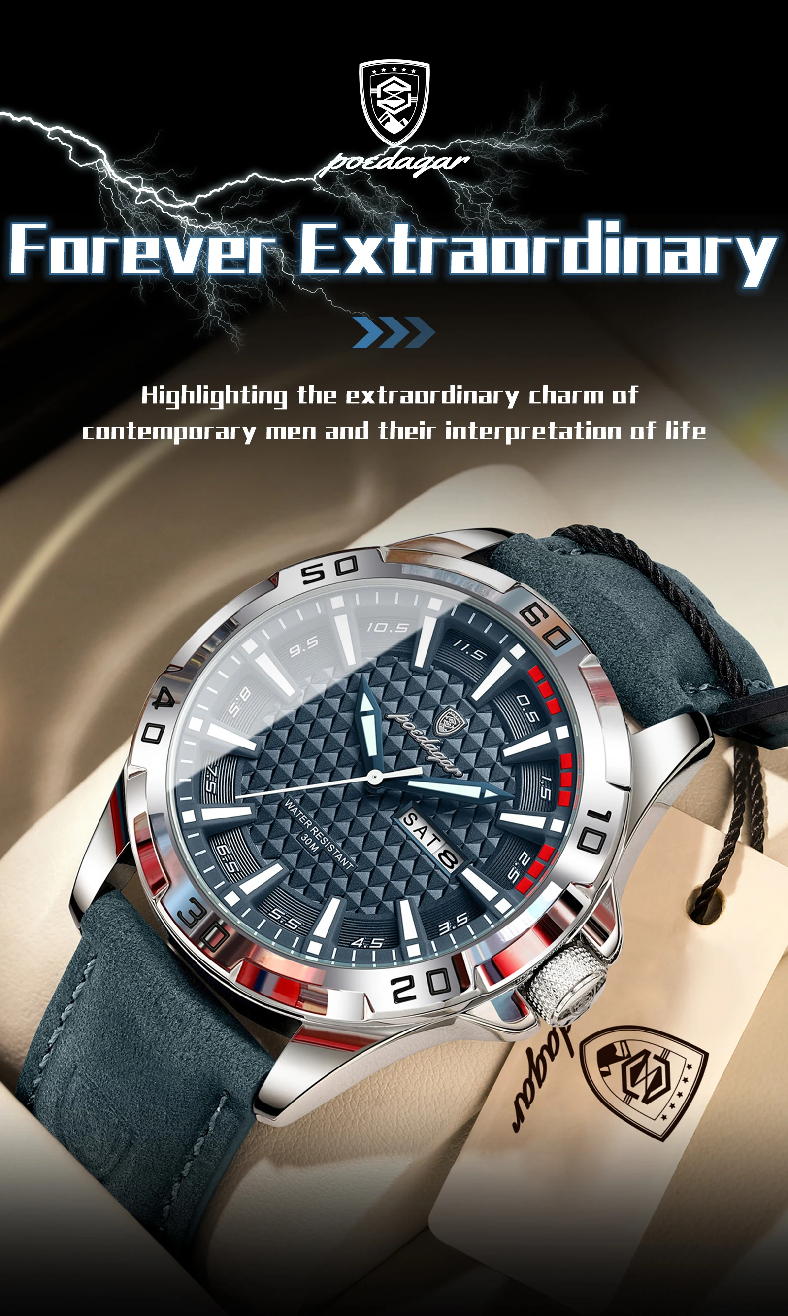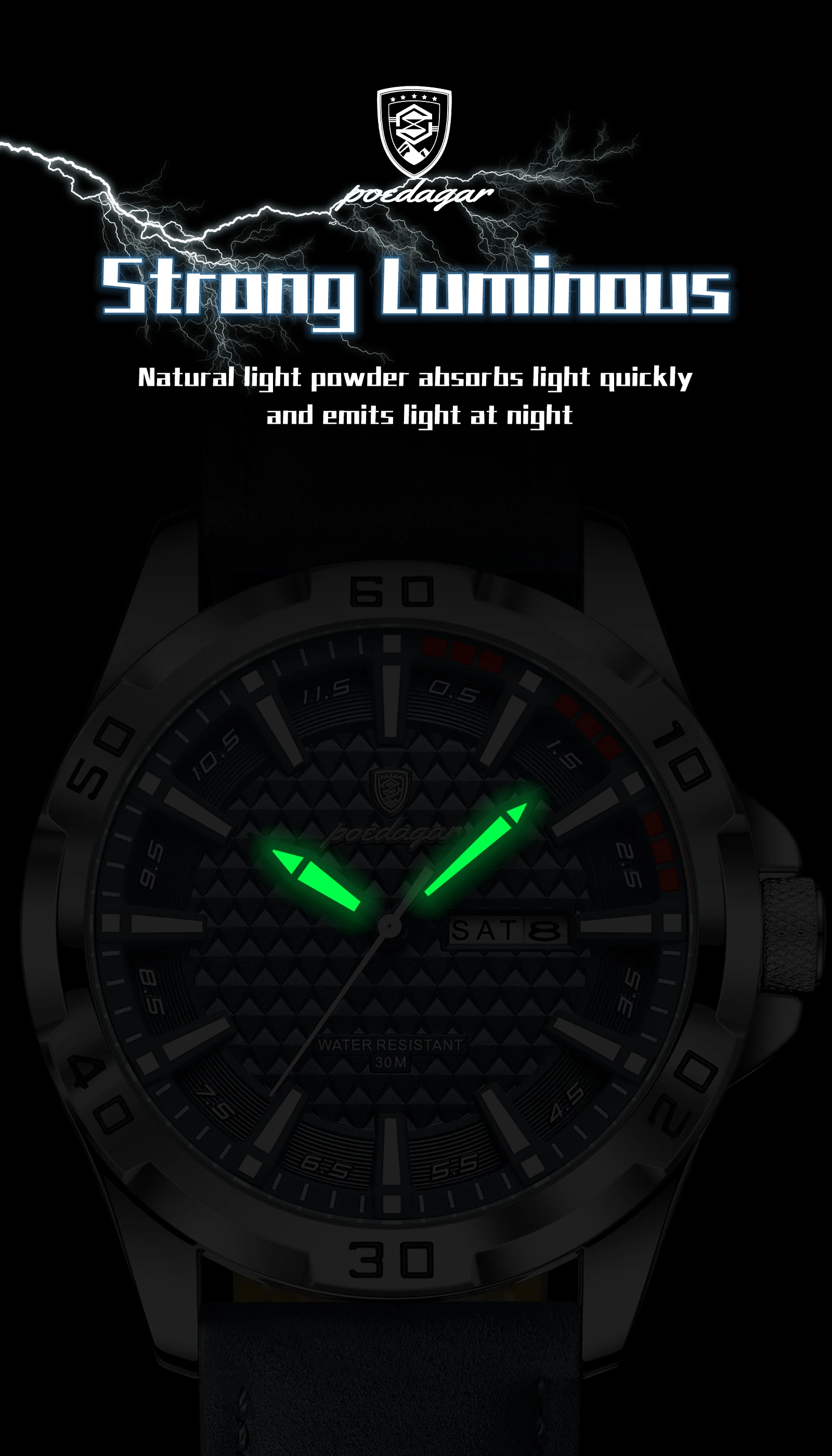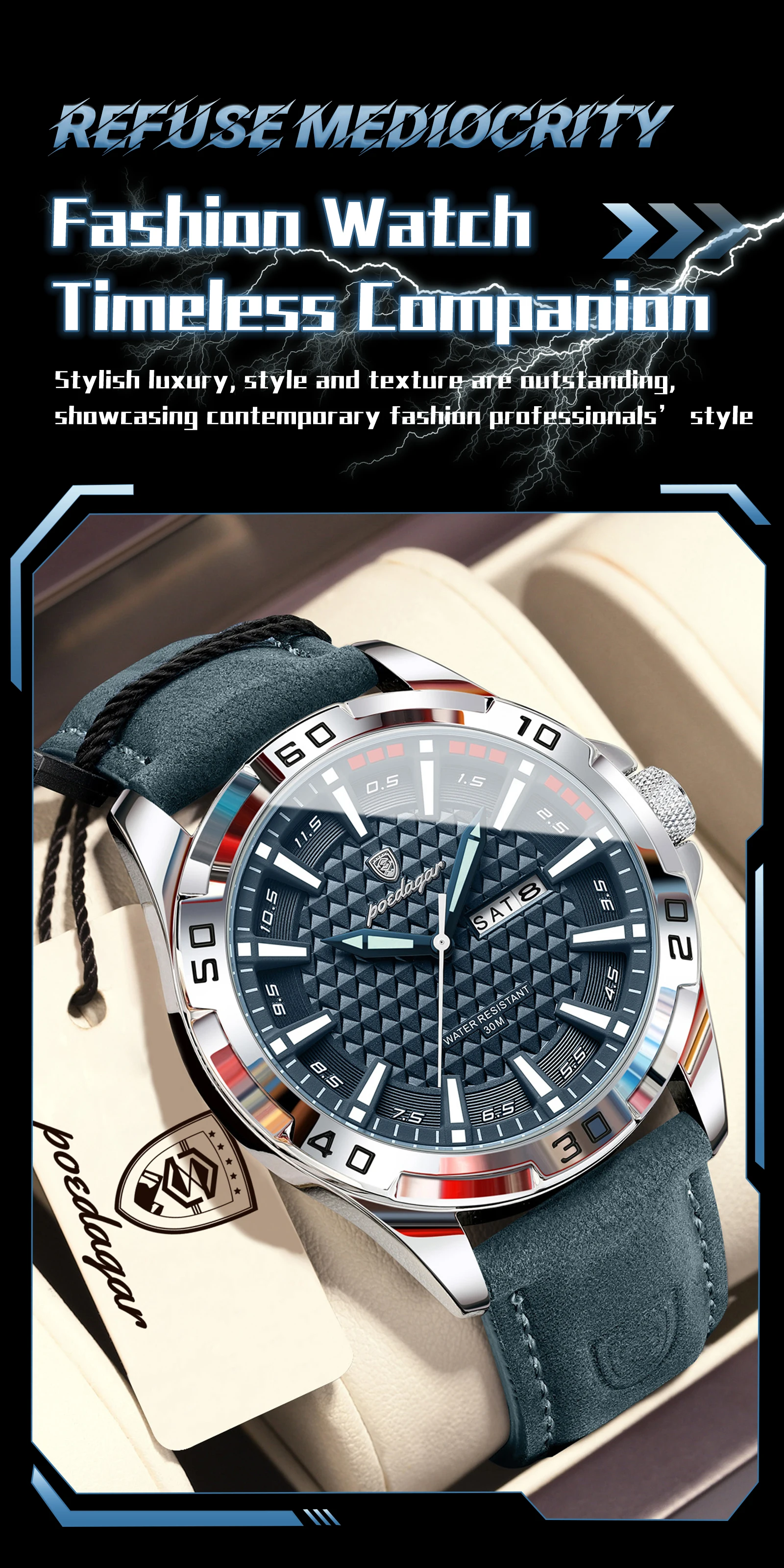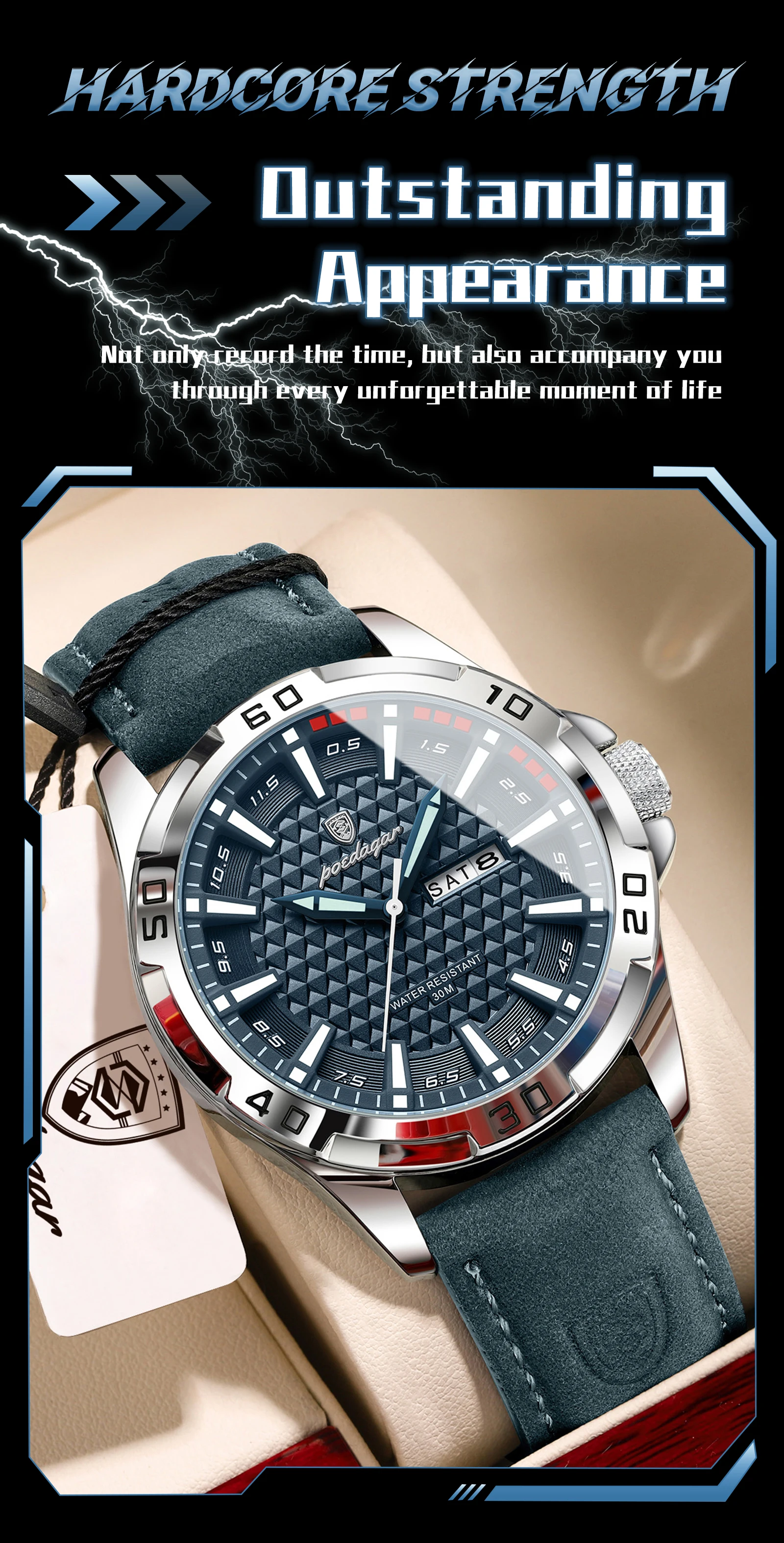 • Top Fashion High Quality Men Watch Waterproof Luminous Date Week Watch For Man Leather Military Men's Quartz Wristwatch