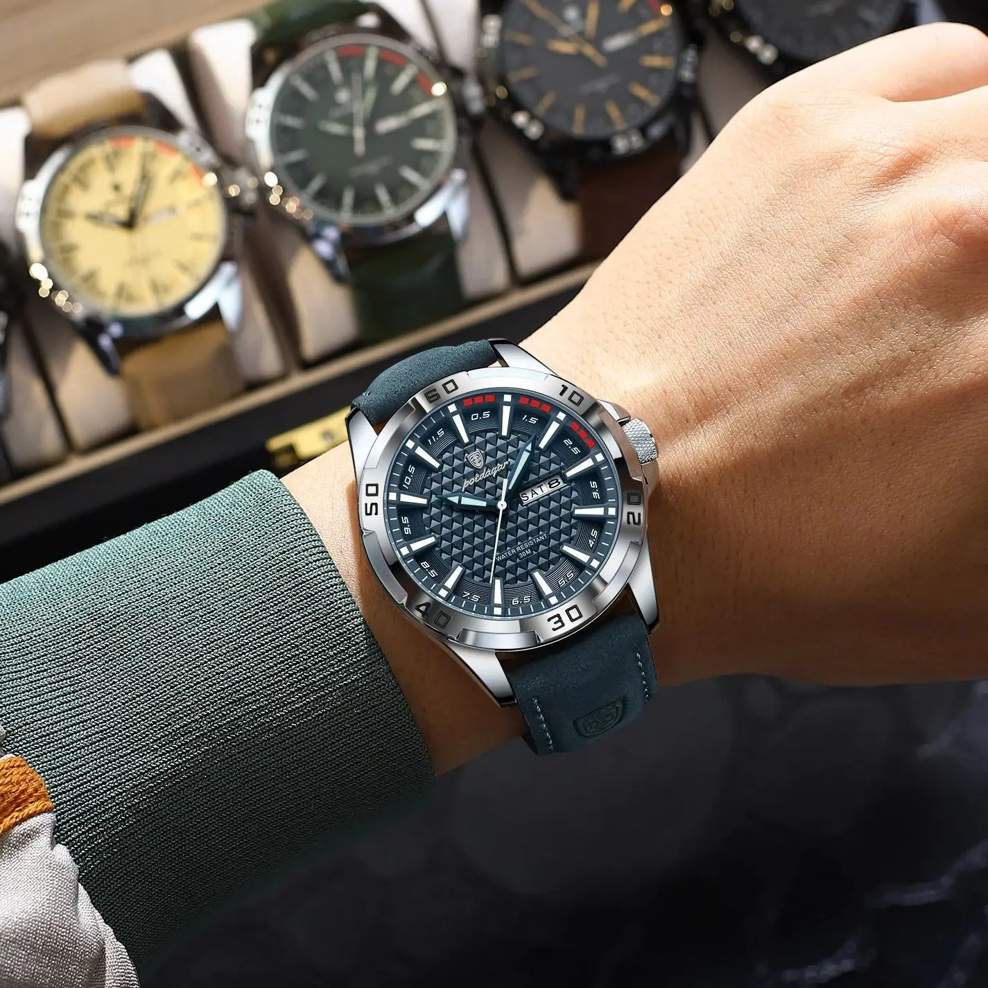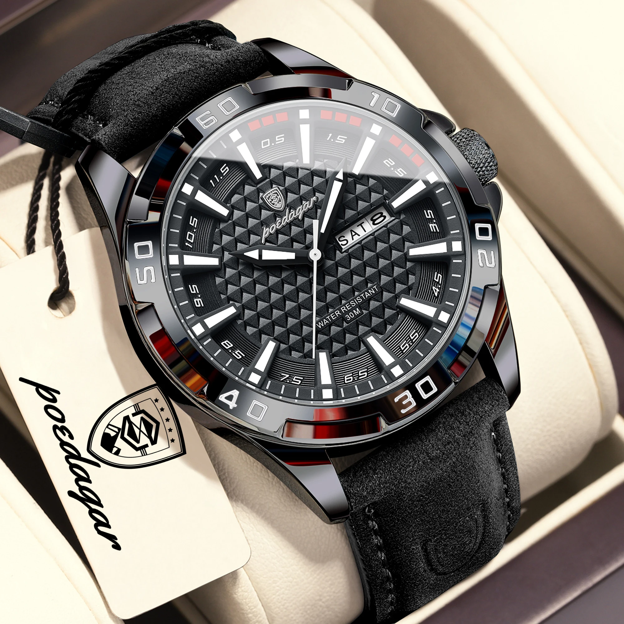 Top Fashion High Quality Men Watch Waterproof Luminous Date Week Watch For Man Leather Military Men's Quartz Wristwatch