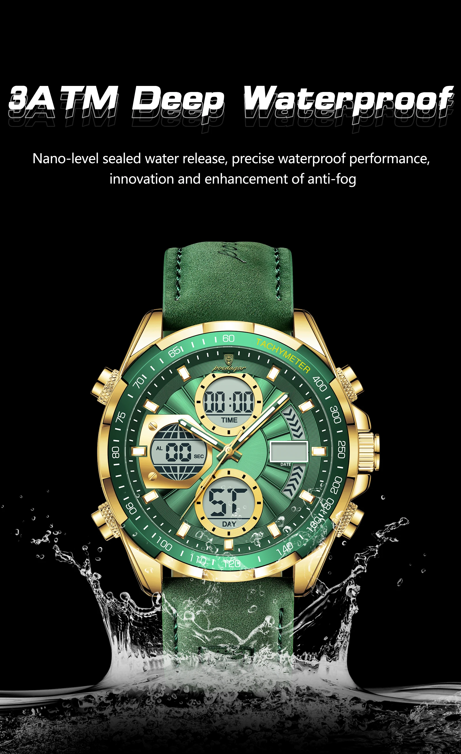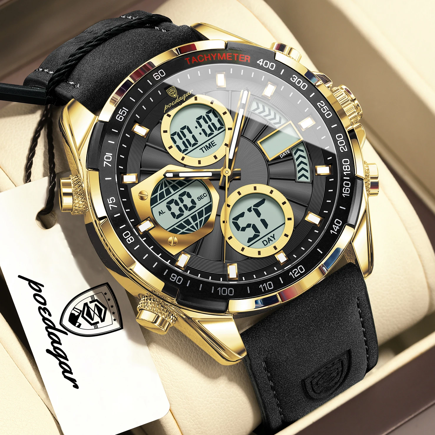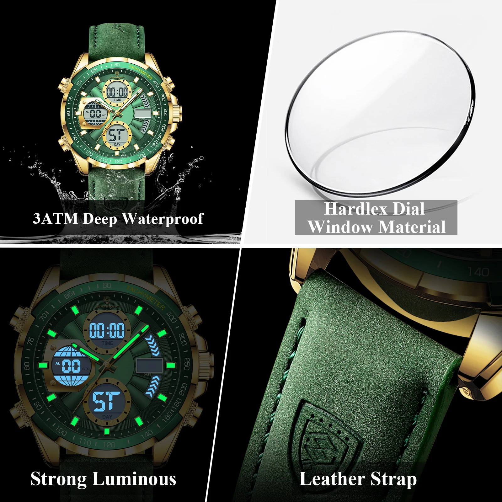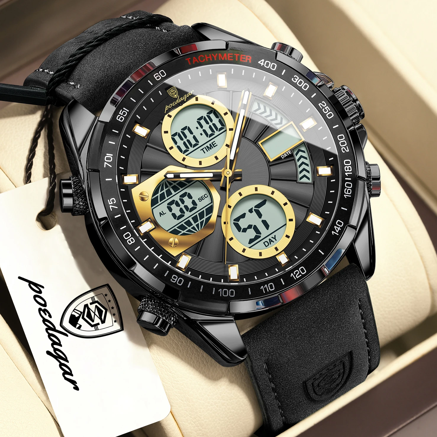 • Sports Digital Men Wristwatch Week Date LED Luminous Quartz Men's Watches Alarm Dual Time Electronic Fashion Male Clock