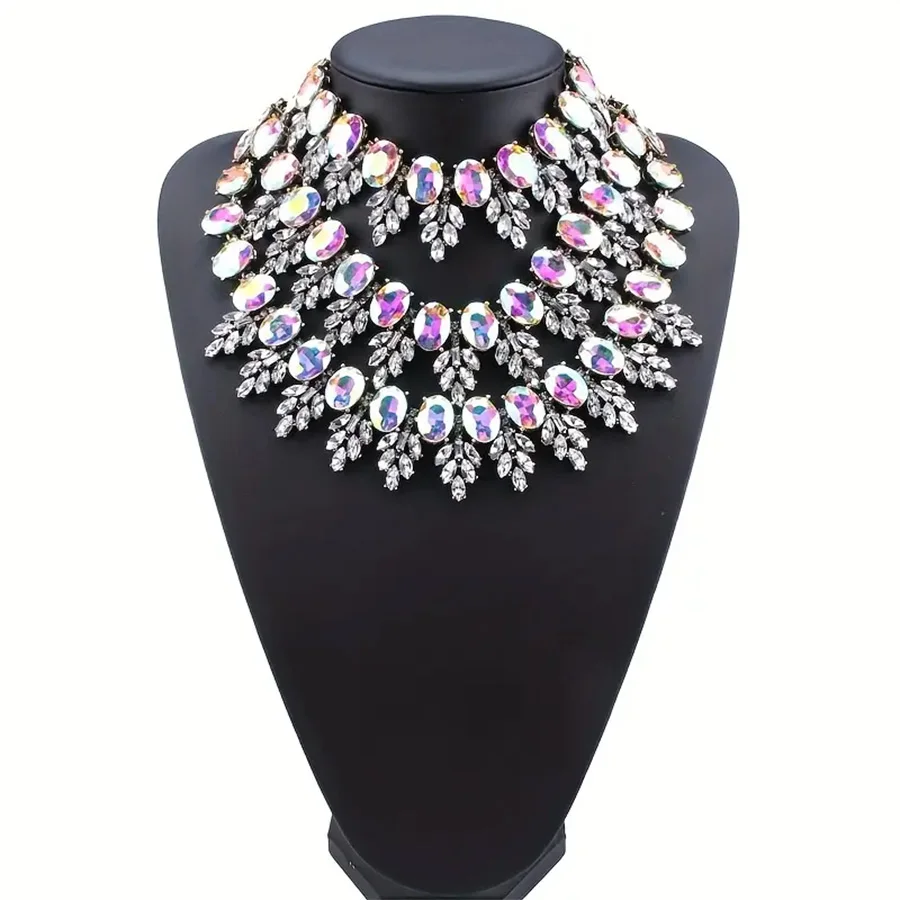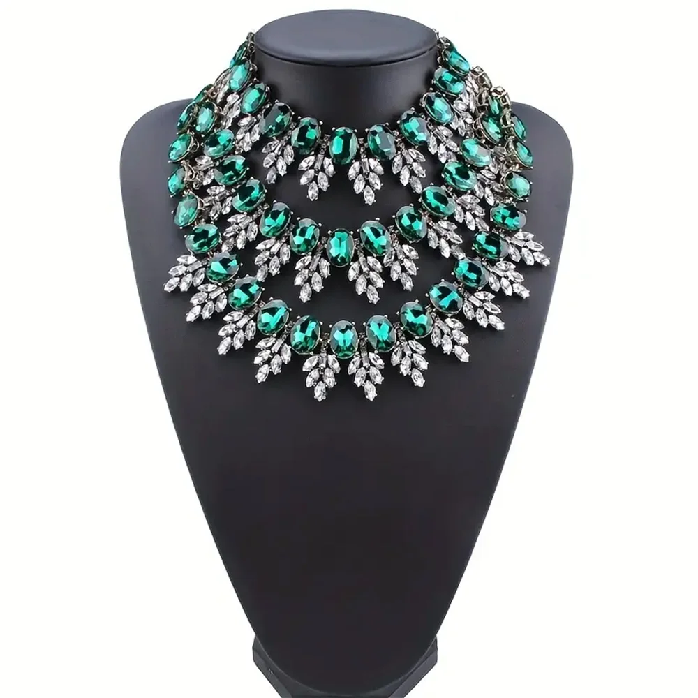 • Green Statement Rhinestone Necklace Body Chian Elegant Neck Chain Jewelry For Women