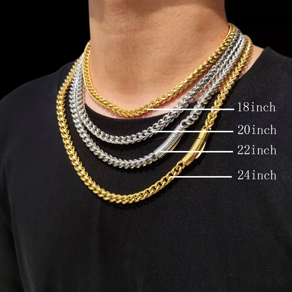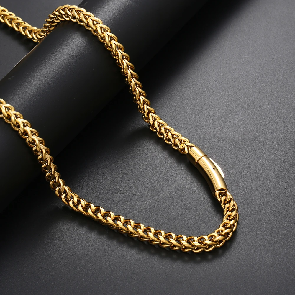 Hip Hop 18k Gold 6mm Chain for Men Necklace Stainless Steel PVD Plated Franco Chain