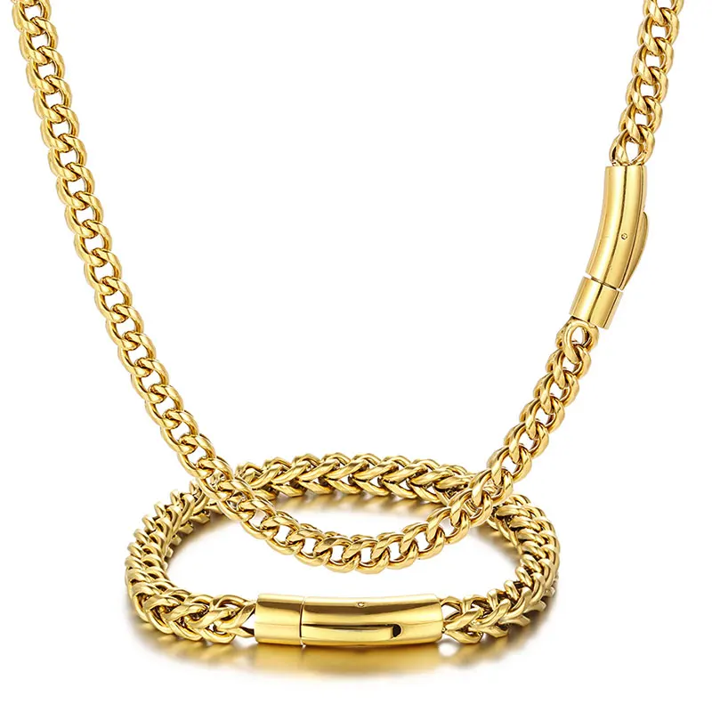 Hip Hop Stainless Steel PVD Plated Franco Chain 6MM Polishing Clasp Necklace Stainless Steel Bracelet Women Mens Jewelry
