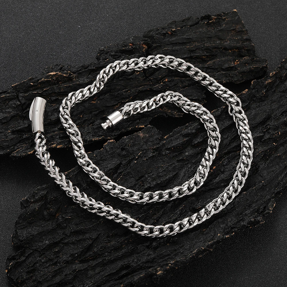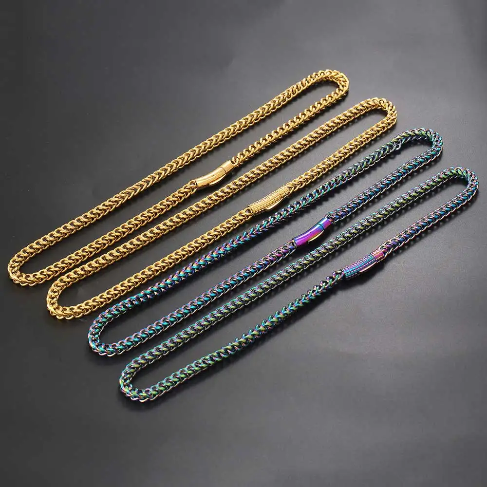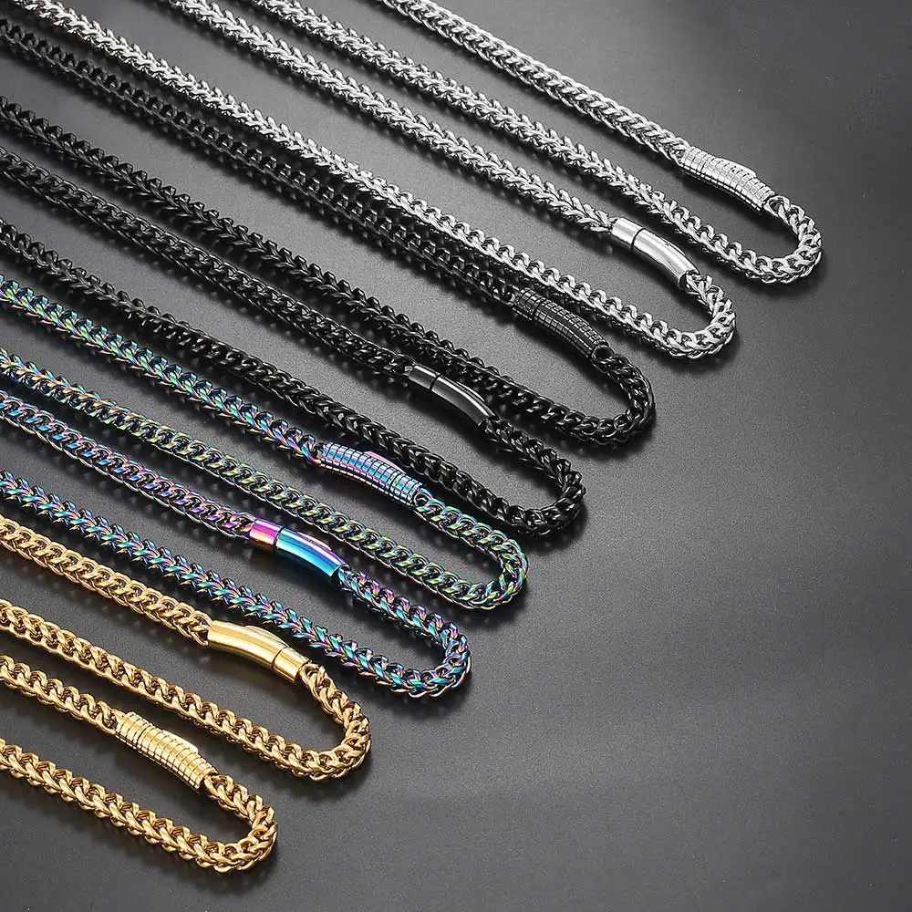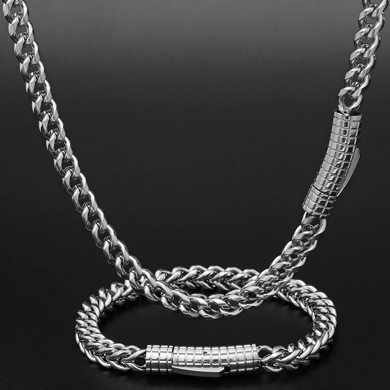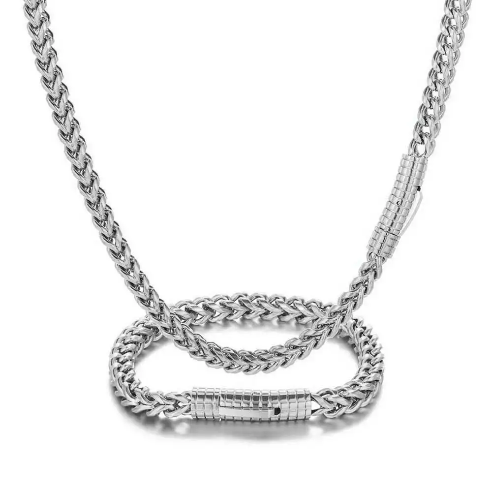 • Hip Hop Stainless Steel PVD Plated Franco Chain 6MM Polishing Clasp Necklace Stainless Steel Bracelet Women Mens Jewelry