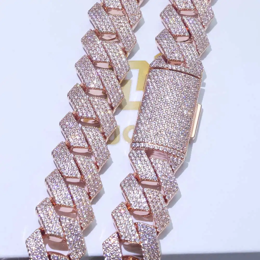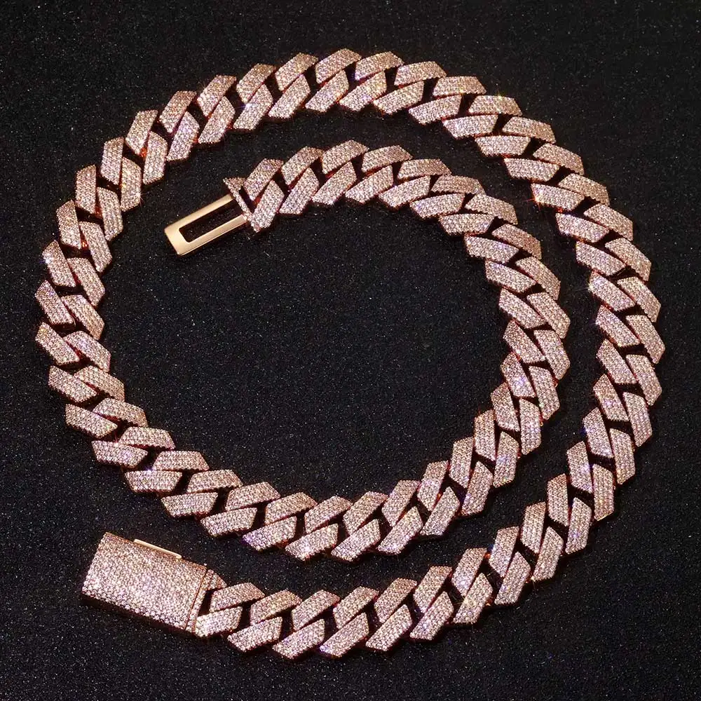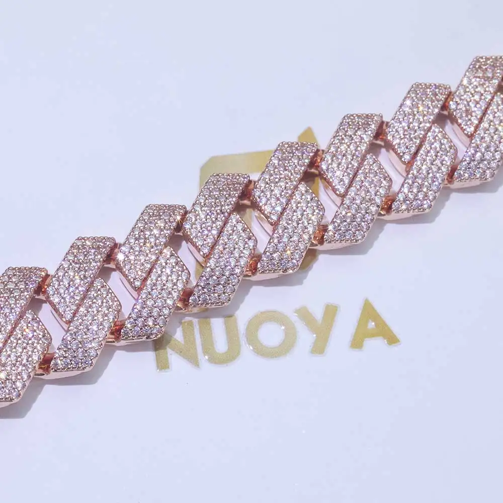 15MM Women's Rose Gold Cuban Bracelet Frozen Hip Hop Shining Cube Zirconia Brass Miami Men's Necklace LOGO