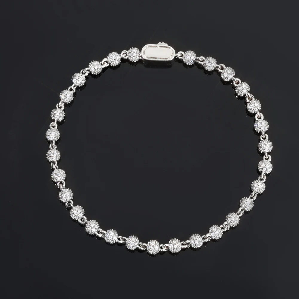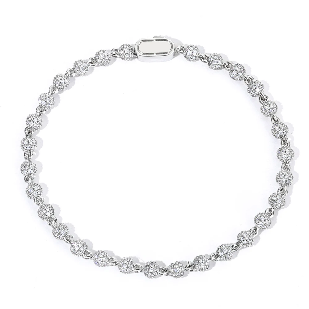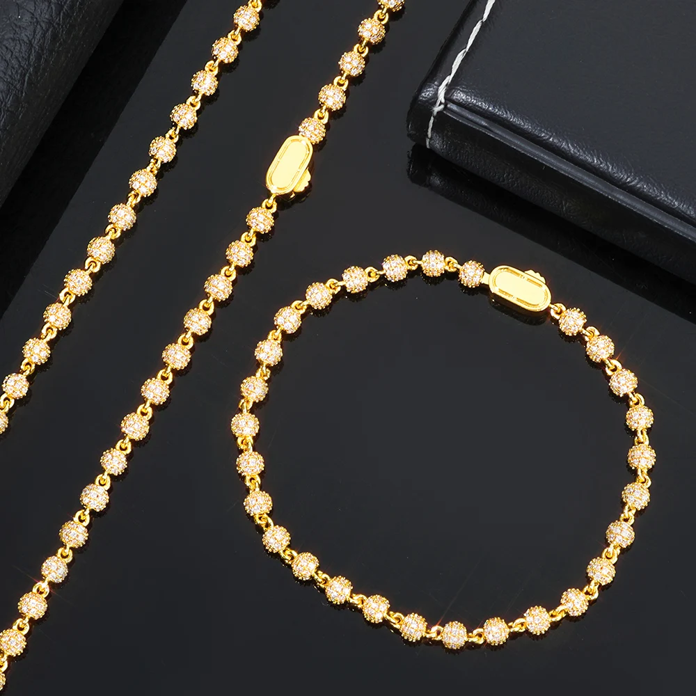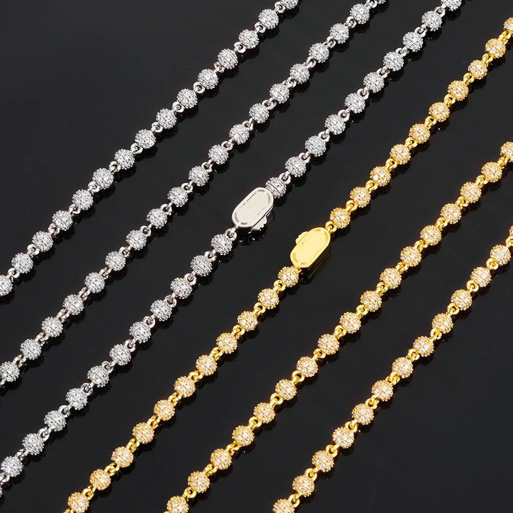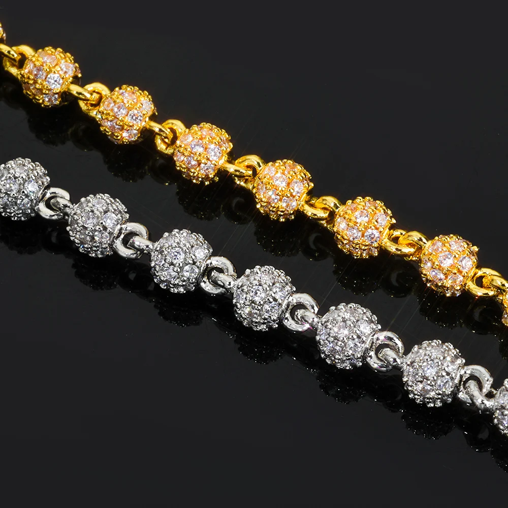 Full Diamond Round Bead Diamond Bracelet Women's Premium 4mm Gold Plated Spring Buckle Men's Hip Hop Accessories
