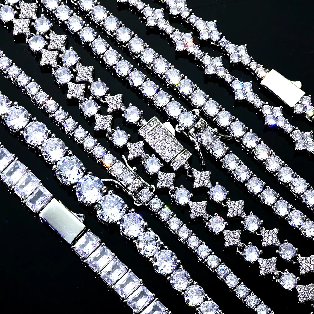 NUOYA Hip Hop 7-9inch Bracelet Iced Out AAAAA CZ Tennis Chain Bling Silver plated Jewelry Diamond luxury Gift Women Men