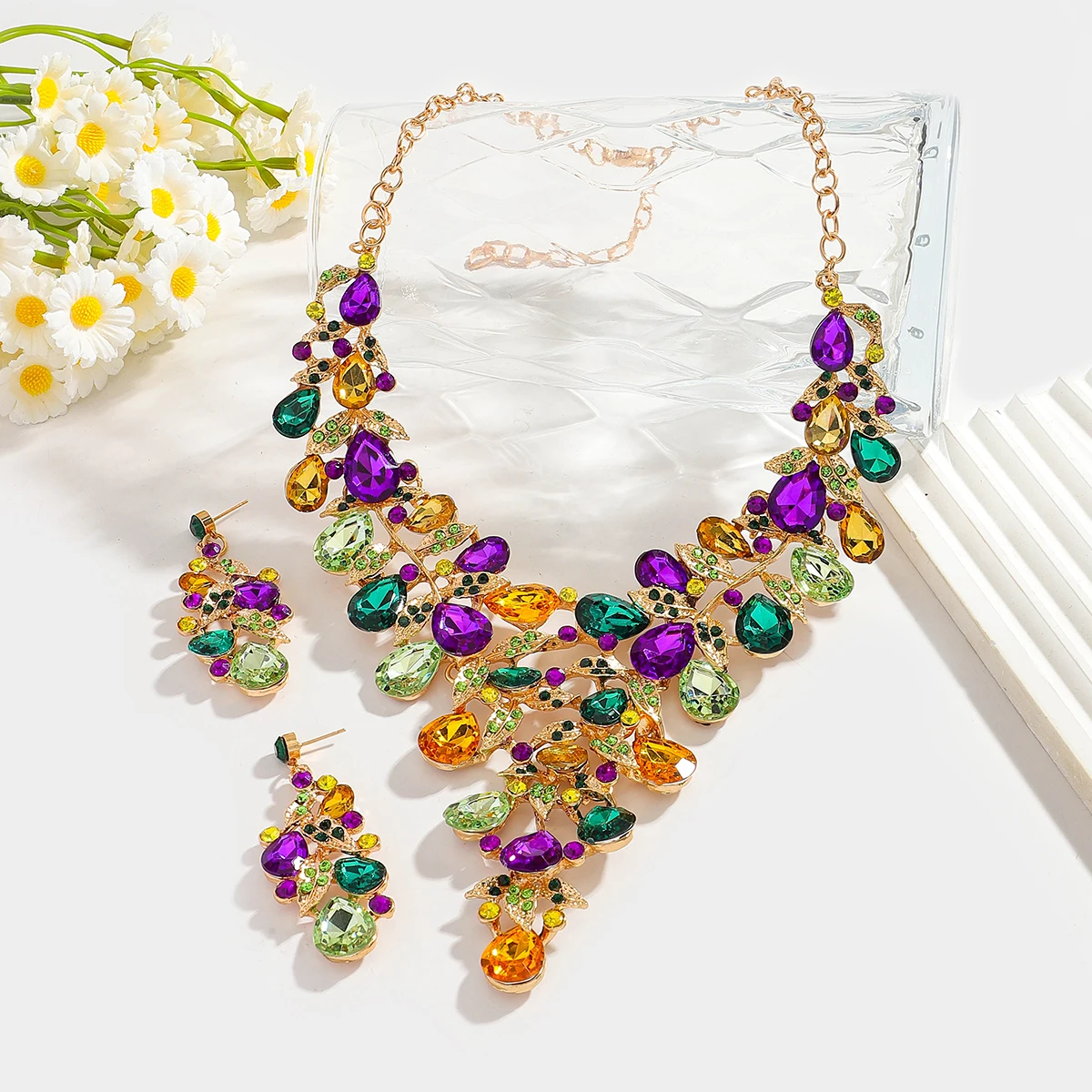 2025 Carnival Bling Colorful Rhinestone Necklace Earrings Jewelry Set for Women High luxury Banquet Party Match with Dress