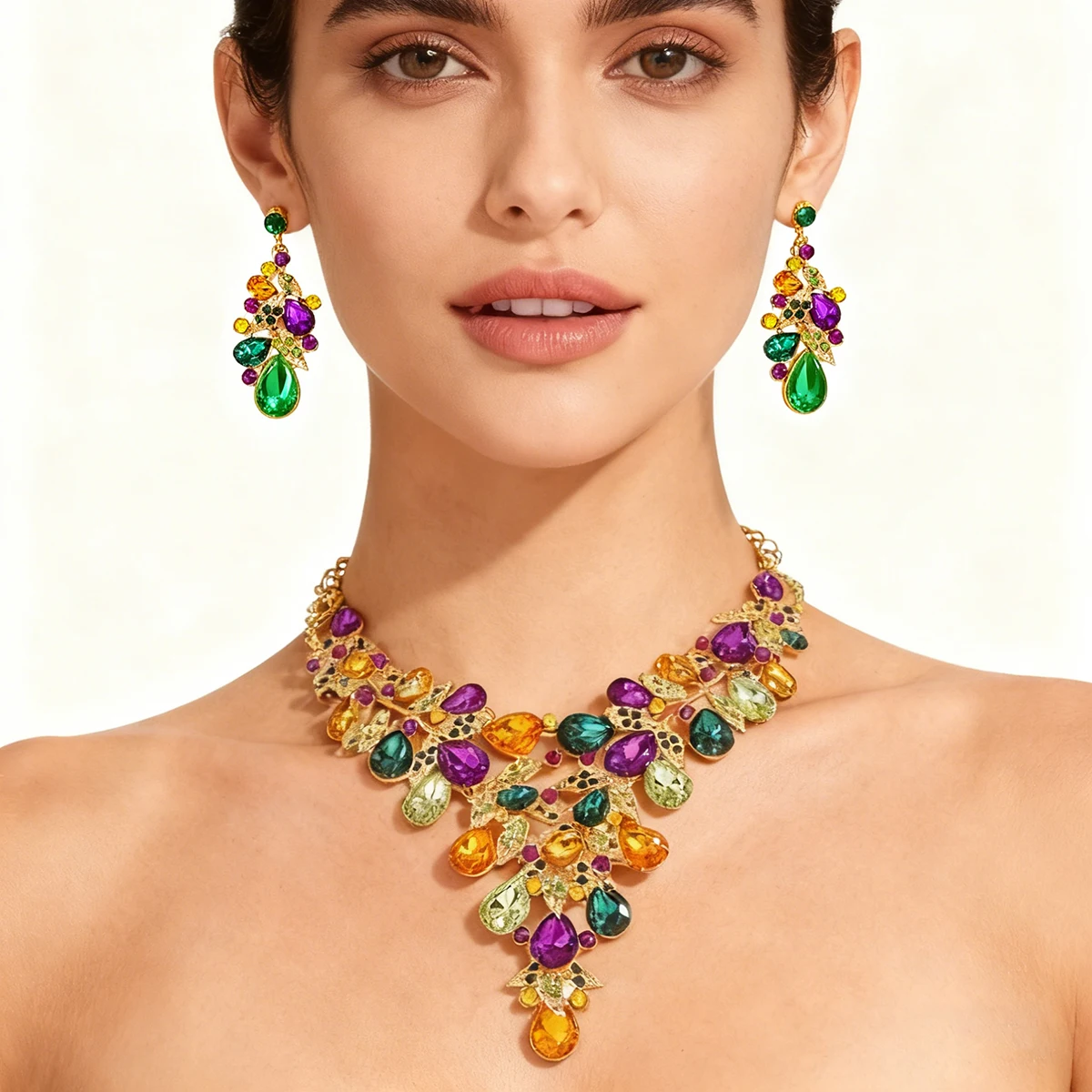 • 2025 Carnival Bling Colorful Rhinestone Necklace Earrings Jewelry Set for Women High luxury Banquet Party Match with Dress