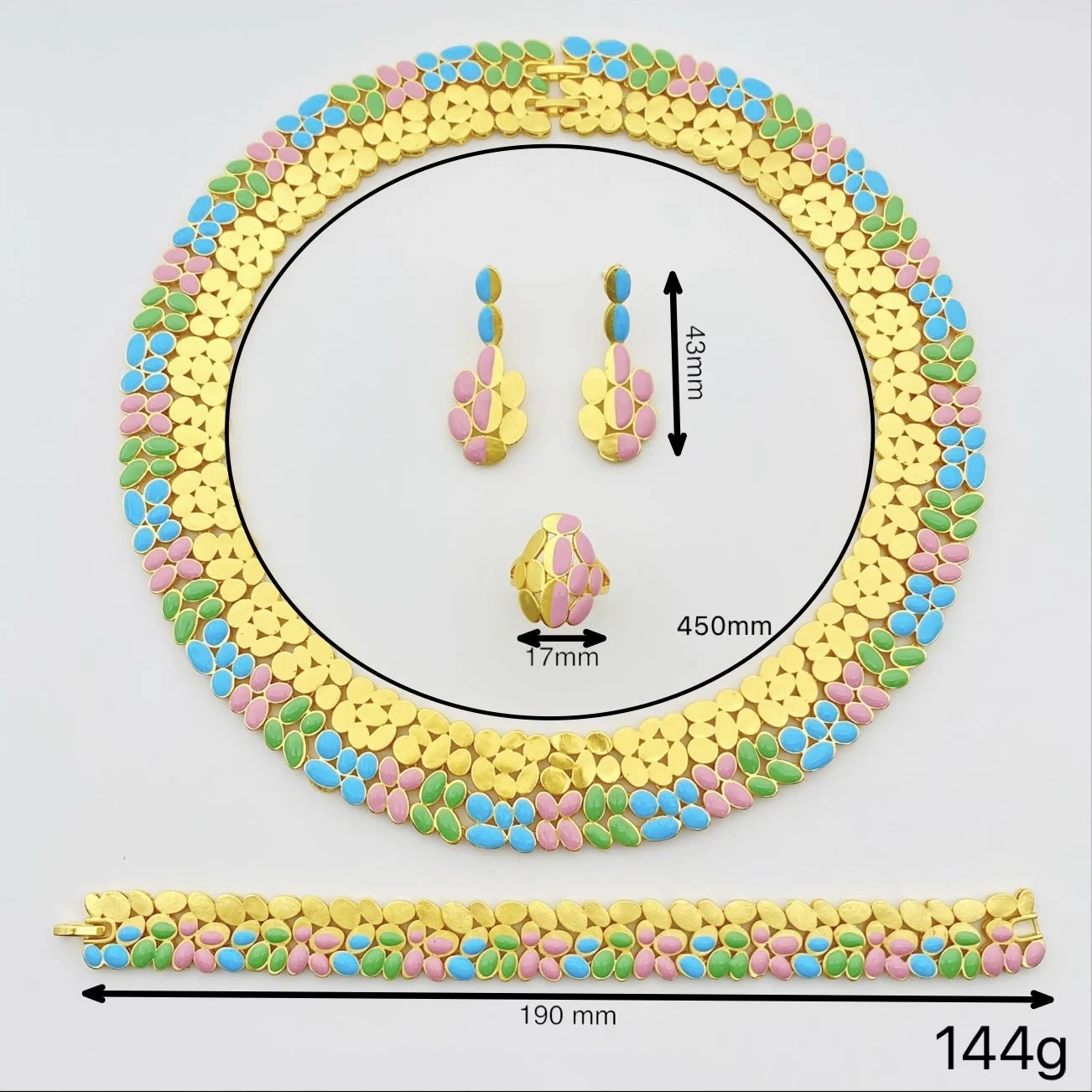 • Luxury Wedding Zircon Jewelry Set Gold Plated Copper Necklace Earrings Ring Bracelet Evening Party Women Jewelry